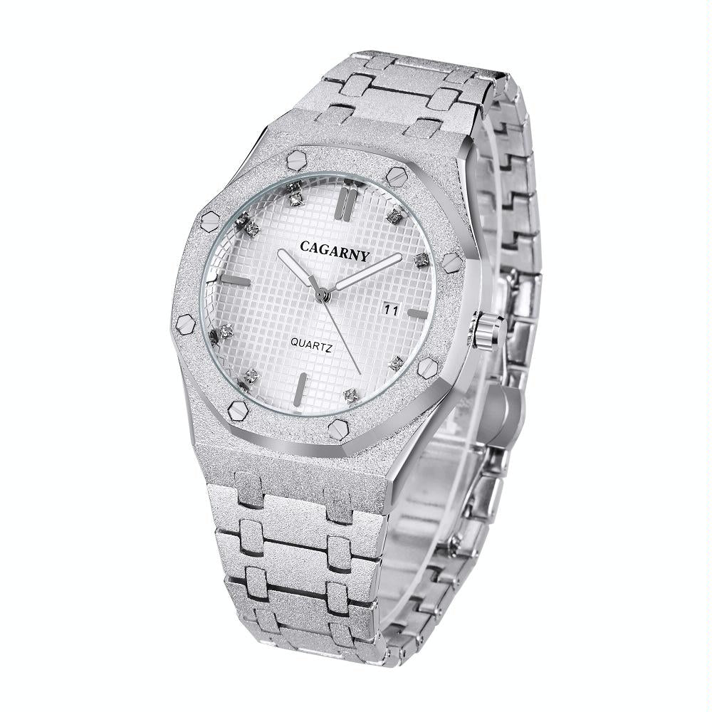 Men Quartz Steel Watch with Simple Stone Surface – Silver Shell Grey Surface