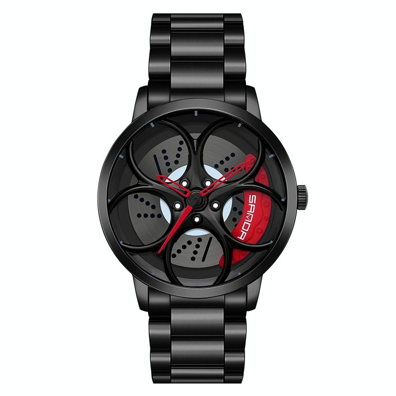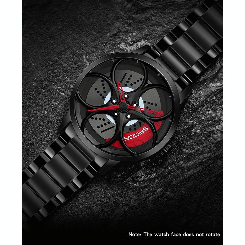 • 1 x 1070 3D Oval Hollow Out Wheel Non-Rotatable Dial Quartz Watch For Men Steel Belt