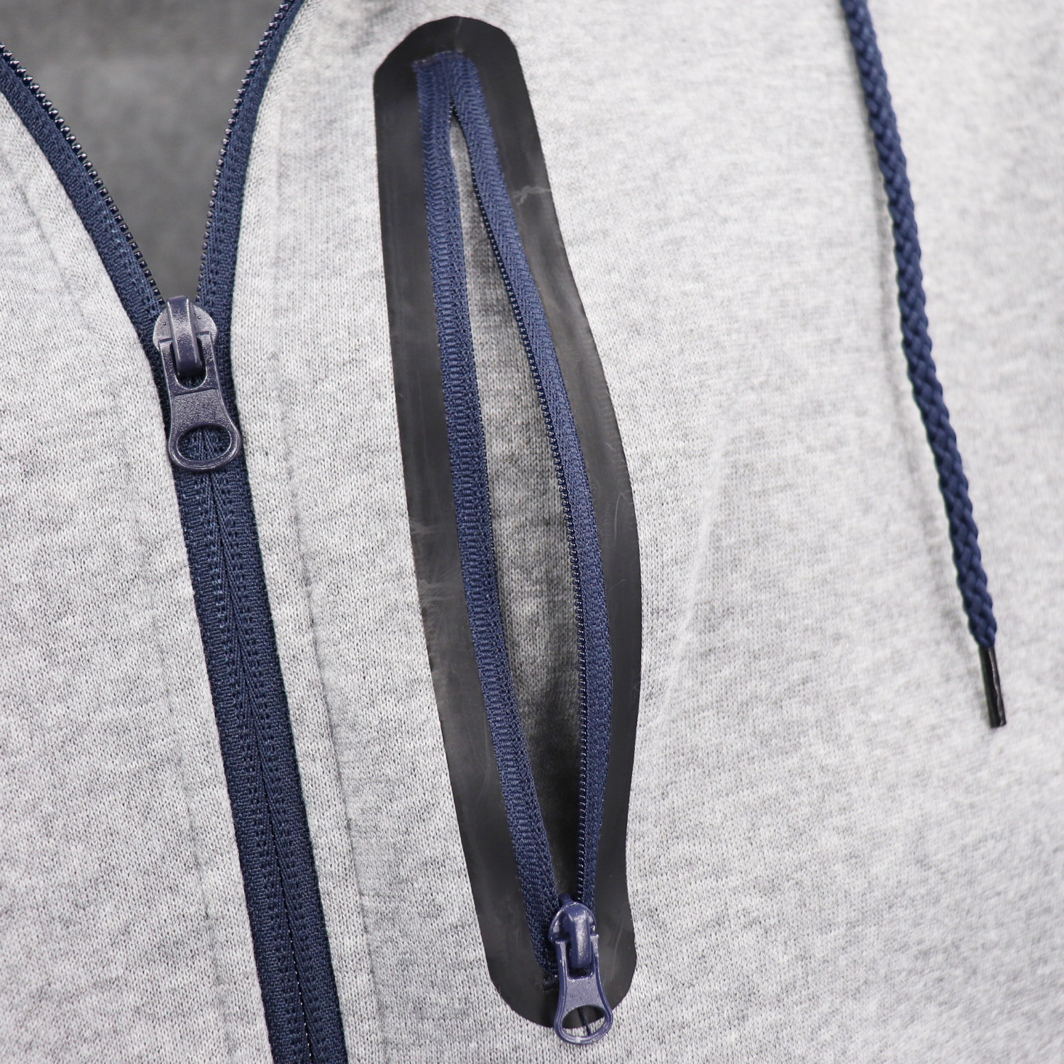 Step up your casual style with our Men’s Unisex Adult Zip-Up Hoodie Jumper. Designed for active wear, this regular-fit hoodie is crafted from an ultra-soft, lightweight, and durable poly fabric to ensure lasting comfort and wear. The two-tone design, available in grey/navy or grey/black, adds a touch of modern aesthetics. The full zip fastening, a fixed hood, and ribbed trims ensure a snug and perfect fit.
