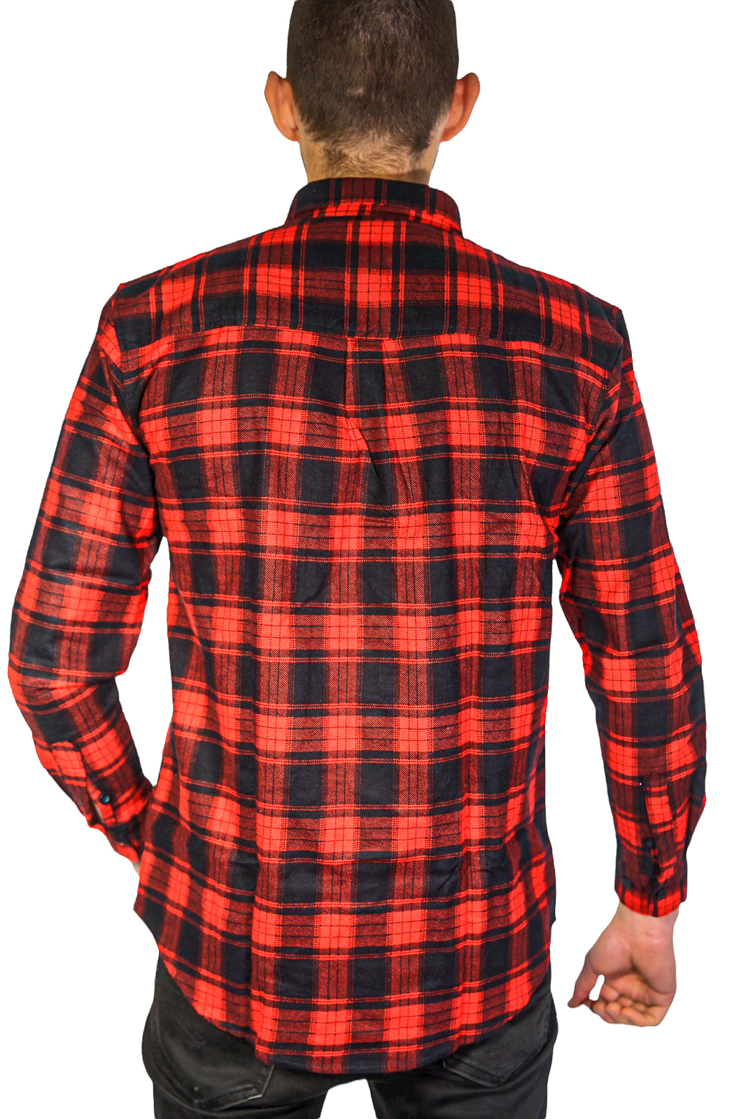 Mens Flannelette Long Sleeve Shirt 100% Cotton Check Authentic Flannel – Full Placket – Red – XXL