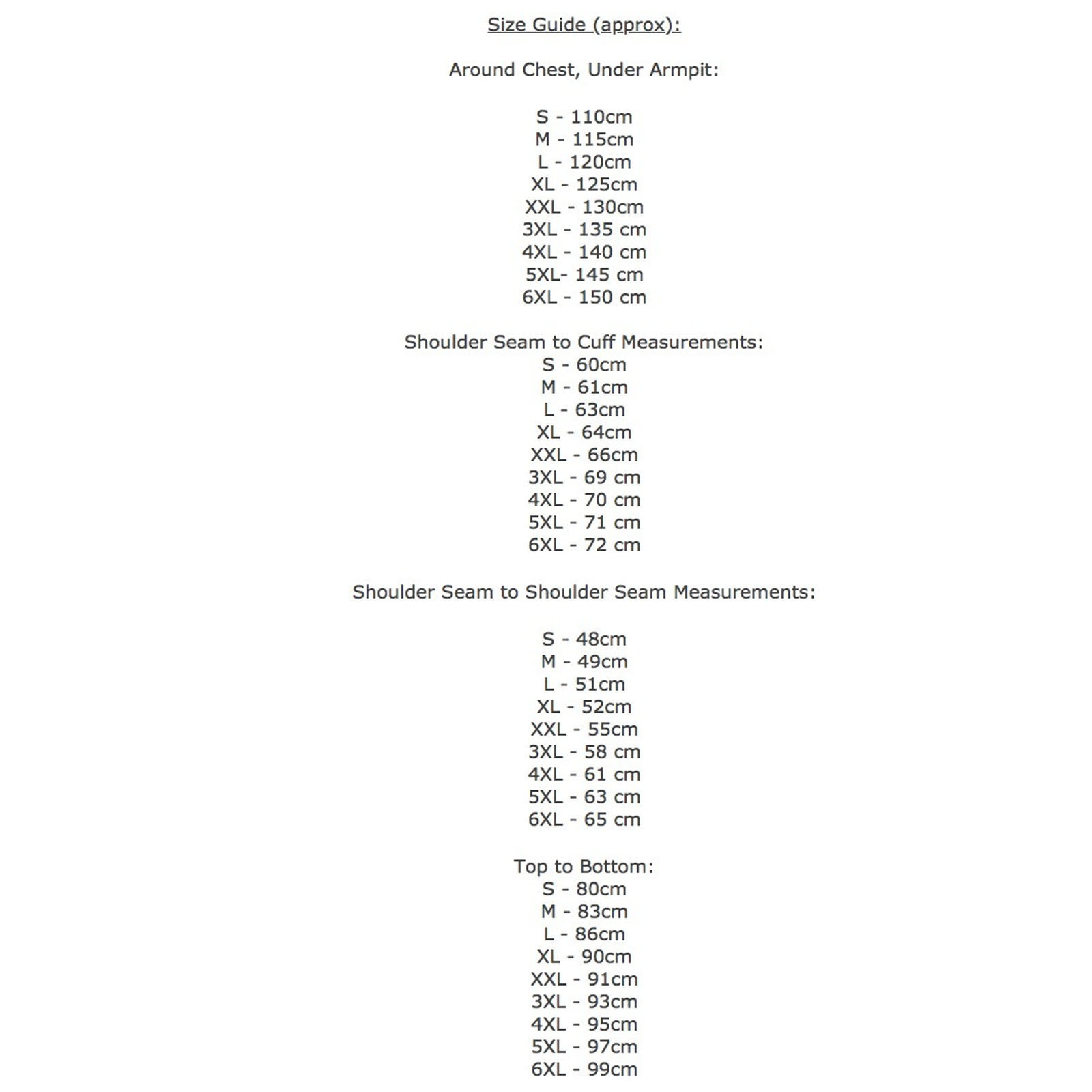 - Available sizes: Small –> 6XL!