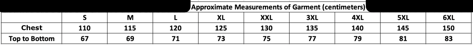 Size Guide (to fit chest):