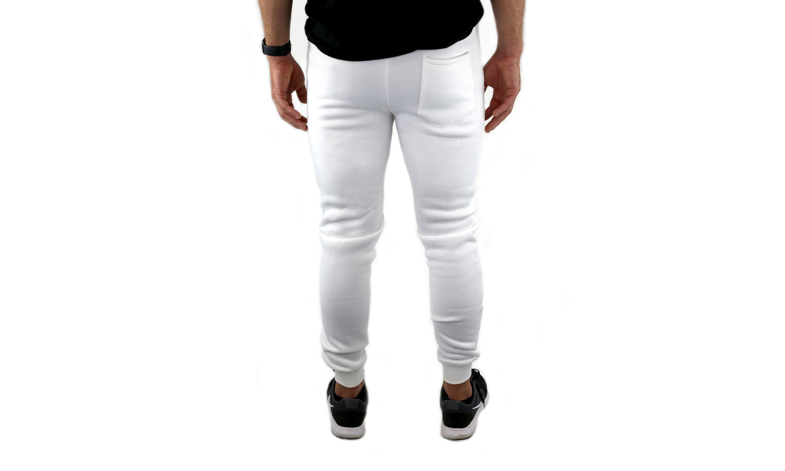 Mens Skinny Track Pants Joggers Trousers Gym Casual Sweat Cuffed Slim Trackies Fleece – White – XL