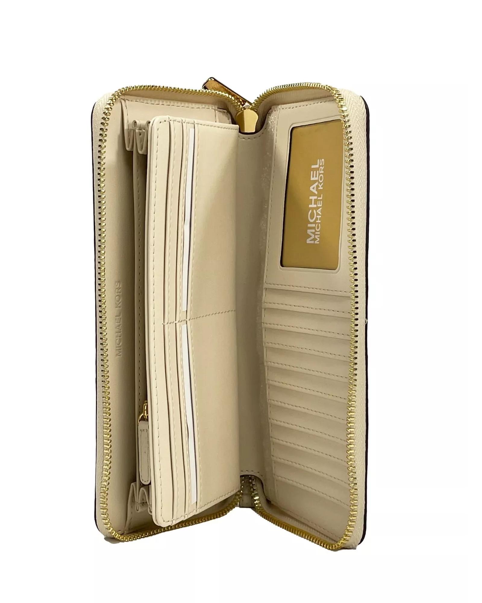 - Style: Michael Kors Jet Set Travel Large Continental Center Stripe Clutch Wristlet Wallet (Vanilla / Pale Gold)