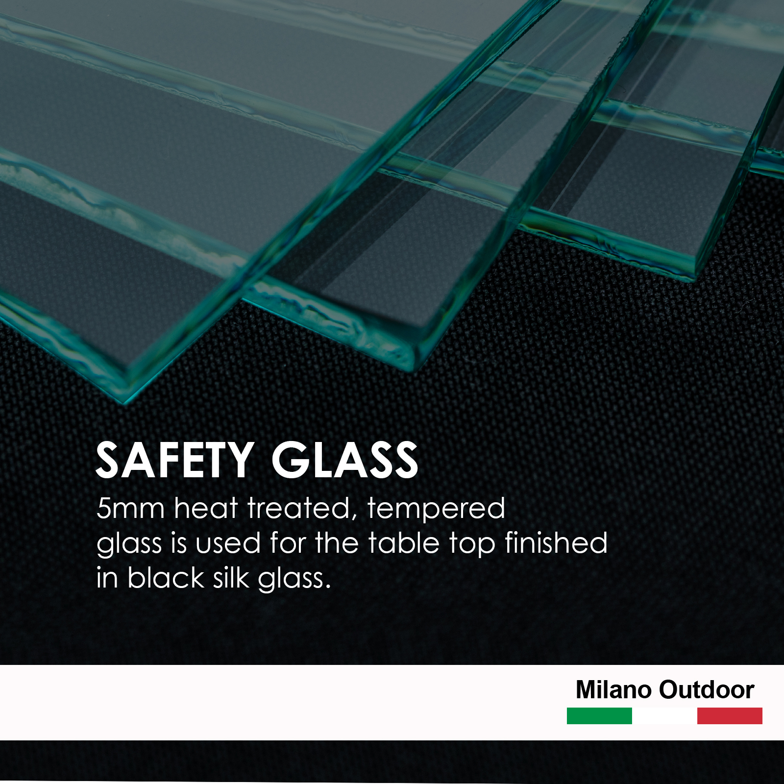 The coffee-table features a tempered glass table-top for peace of mind and the Sofa Set’s overall contemporary and minimalist design makes this conversation Sofa Set a perfect additional to any outdoor setting.