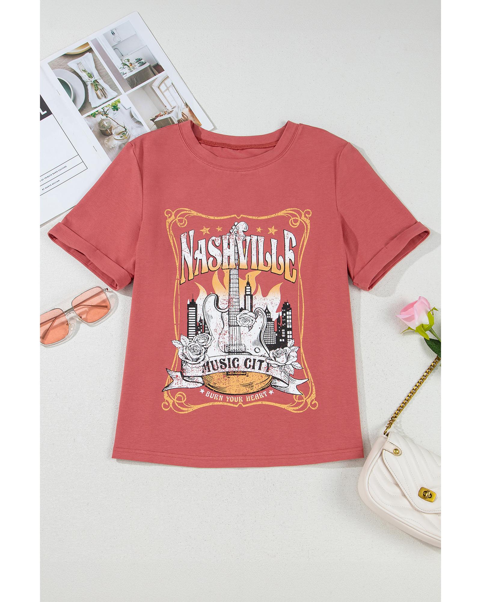 Mineral Red Nashville Music City Graphic Retro Fashion Tee – S