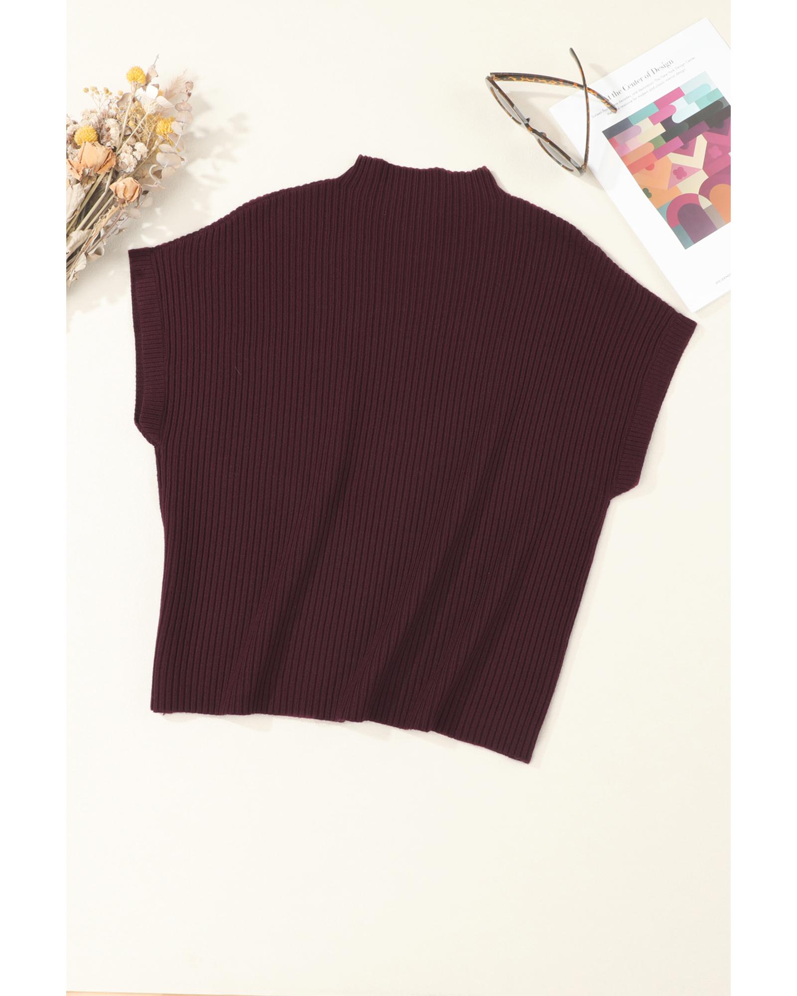 Mineral Red Patch Pocket Ribbed Knit Short Sleeve Sweater – L