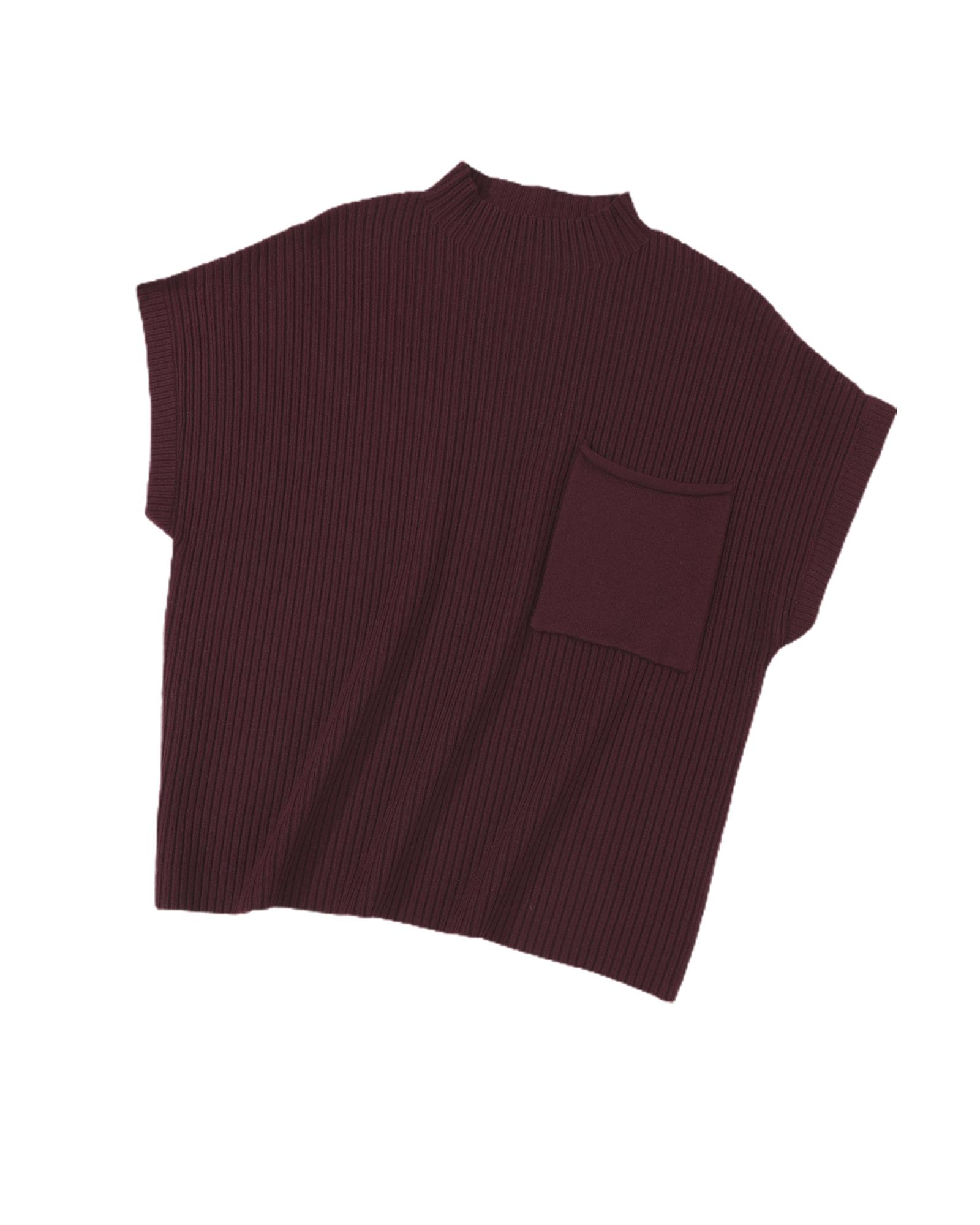 Mineral Red Patch Pocket Ribbed Knit Short Sleeve Sweater – S