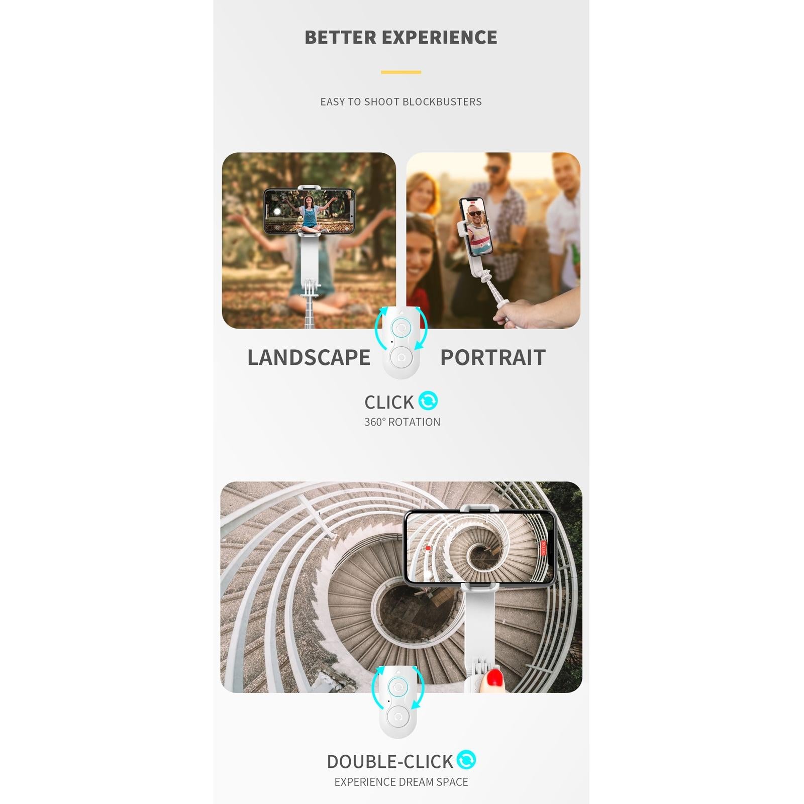 • Can be used as a selfie stick with a maximum length of 72cm