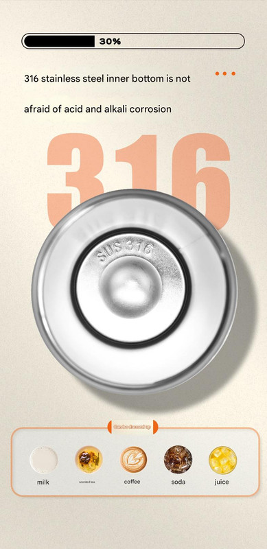 - Premium 316 Stainless Steel Inner: Features a high-quality, corrosion-resistant 316 stainless steel interior, ensuring purity of taste and safe use with various acidic or alkaline drinks like coffee, tea, milk, and juice.