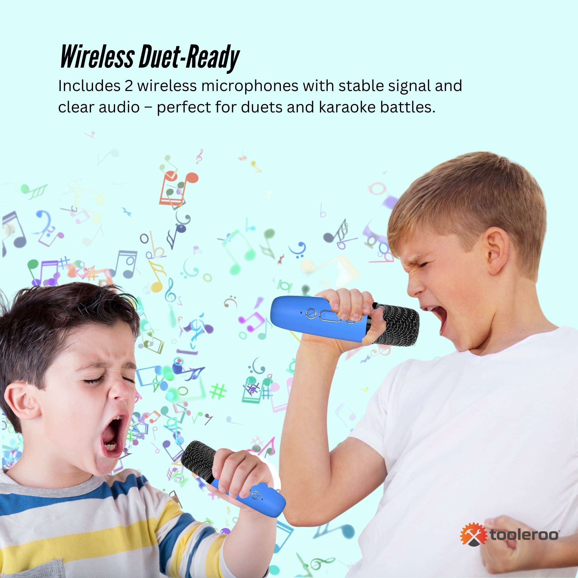 - Wireless Duet-Ready – Includes 2 wireless microphones with stable signal and clear audio – perfect for duets and karaoke battles.