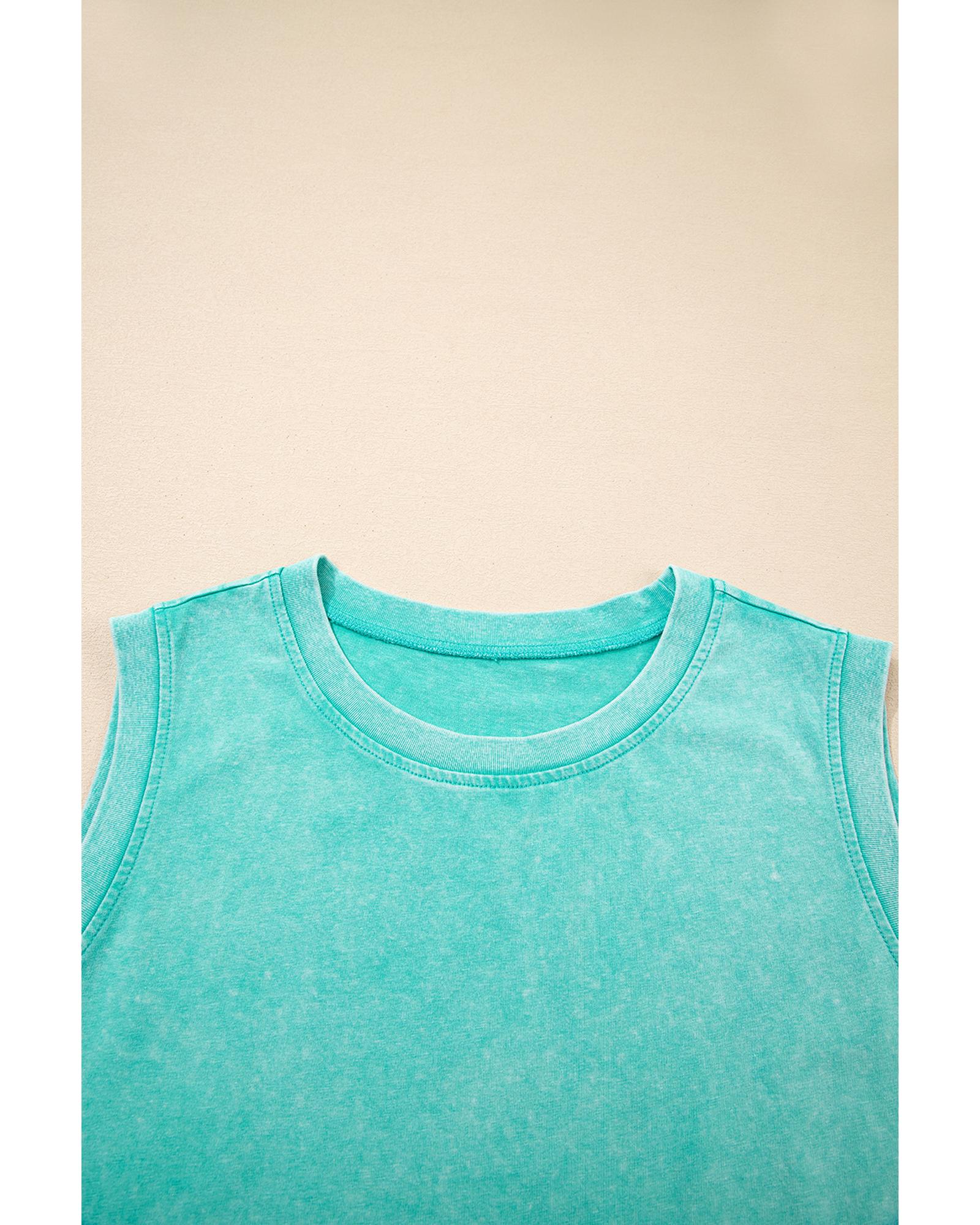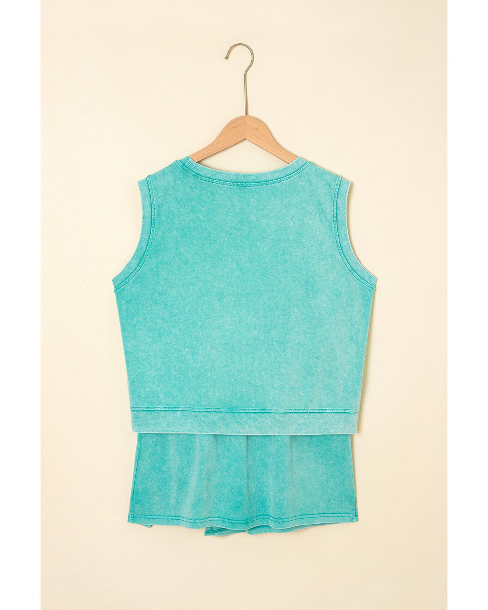 Mint Green 2 Pieces Mineral Wash Cotton Tank Top Lined Split Skirt Set - S