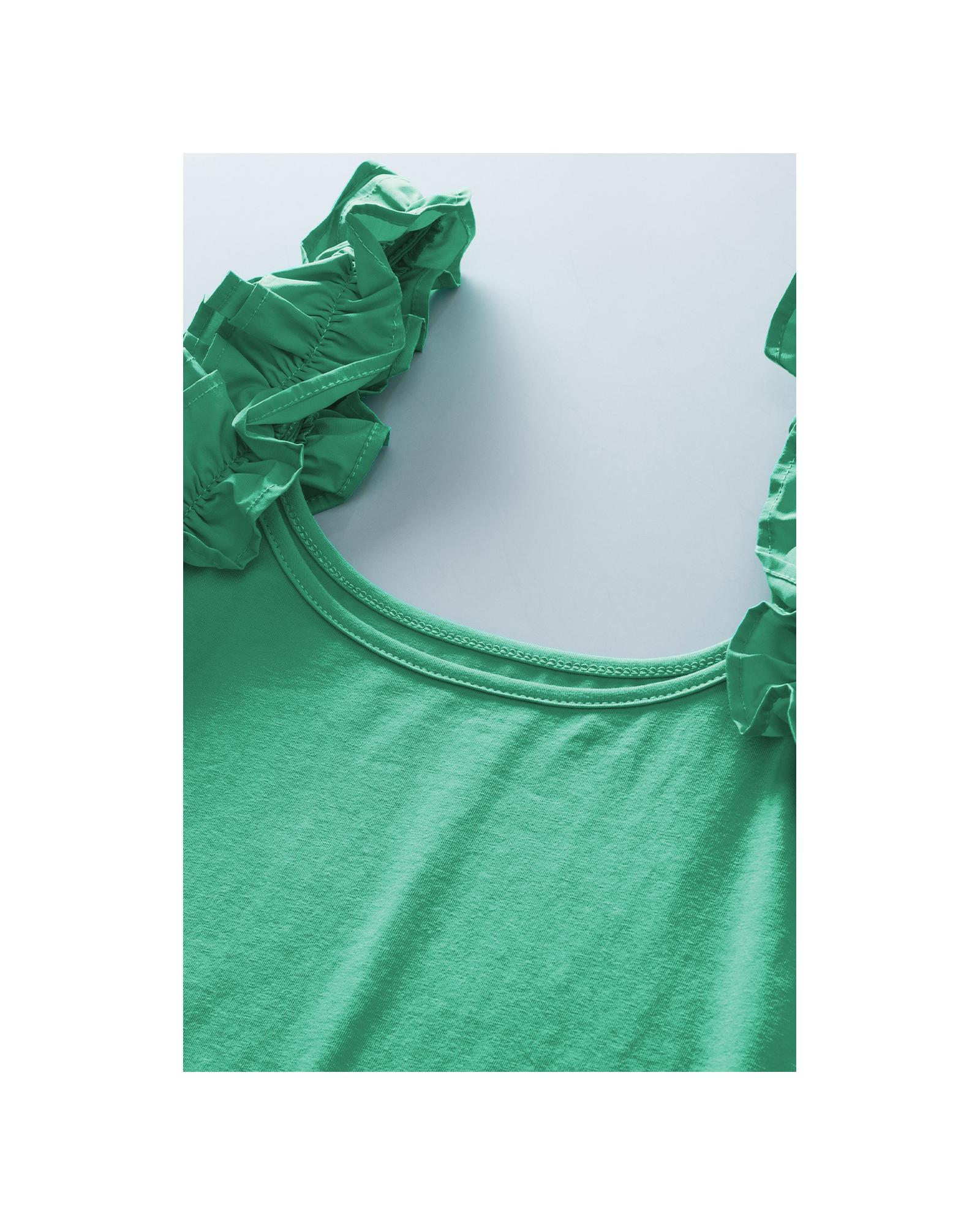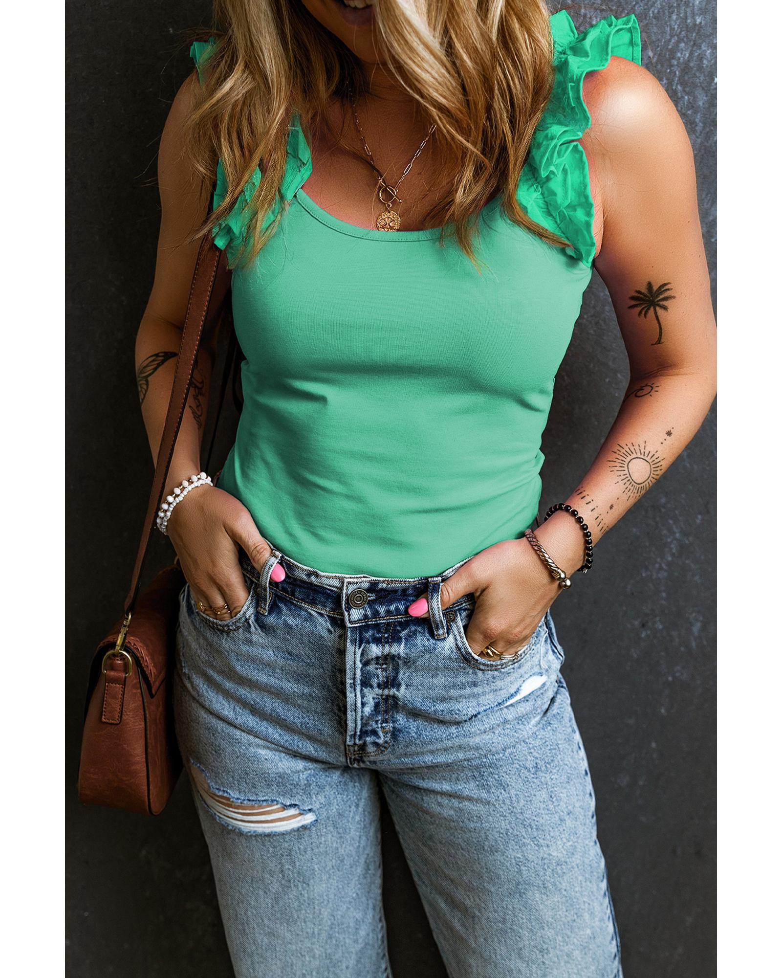 Mint Green Ruffled Wide Straps Slim Tank Top – M