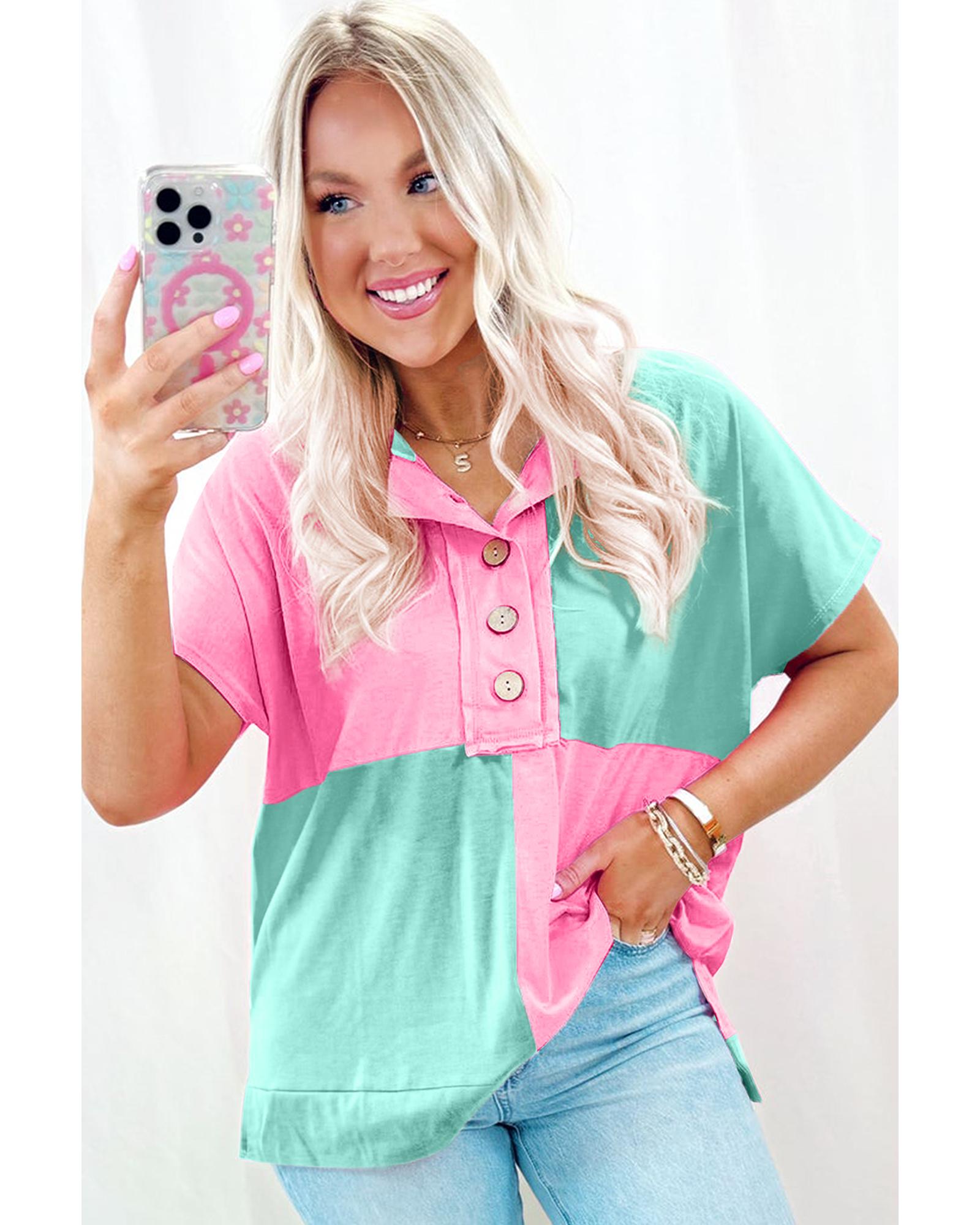 Mint Green Two Tone Half Buttons Collared T Shirt – S