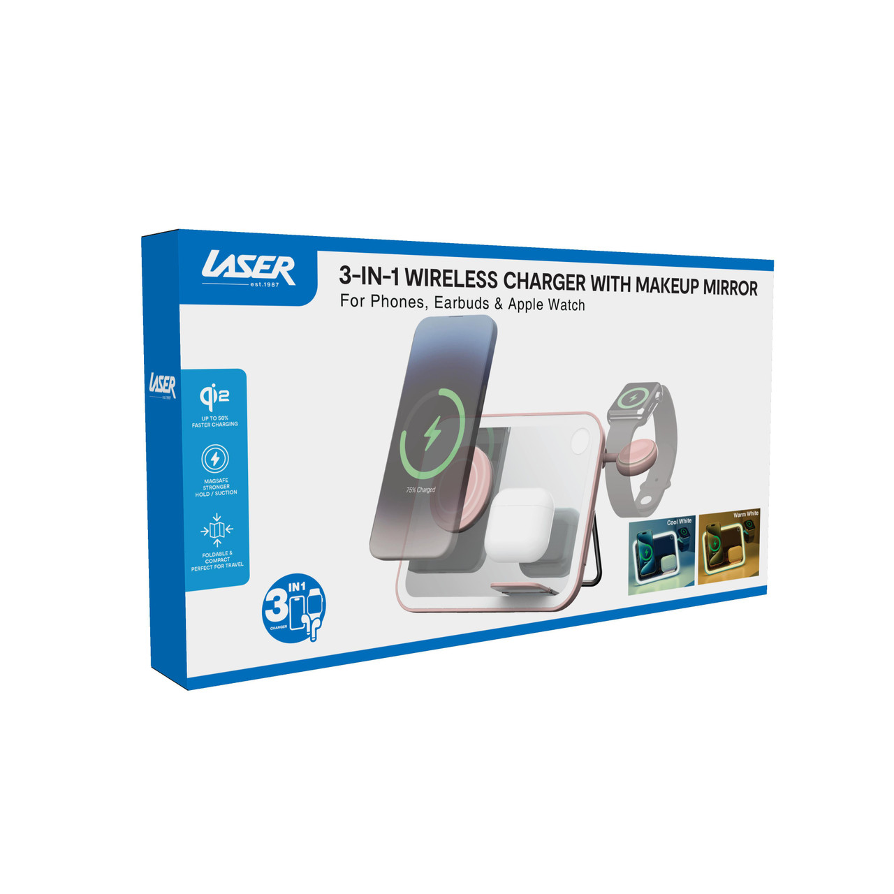 Get ready, stay ready with a charger that works as hard as you do. The Laser 3-in-1 Wireless Charger with Makeup Mirror Transcendent Pink is the perfect blend of form and function, designed for Aussies who live life on the go. Whether youre powering through a uni morning, touching up before brunch, or heading straight from work to dinner, it keeps your essentials charged and your look on point.