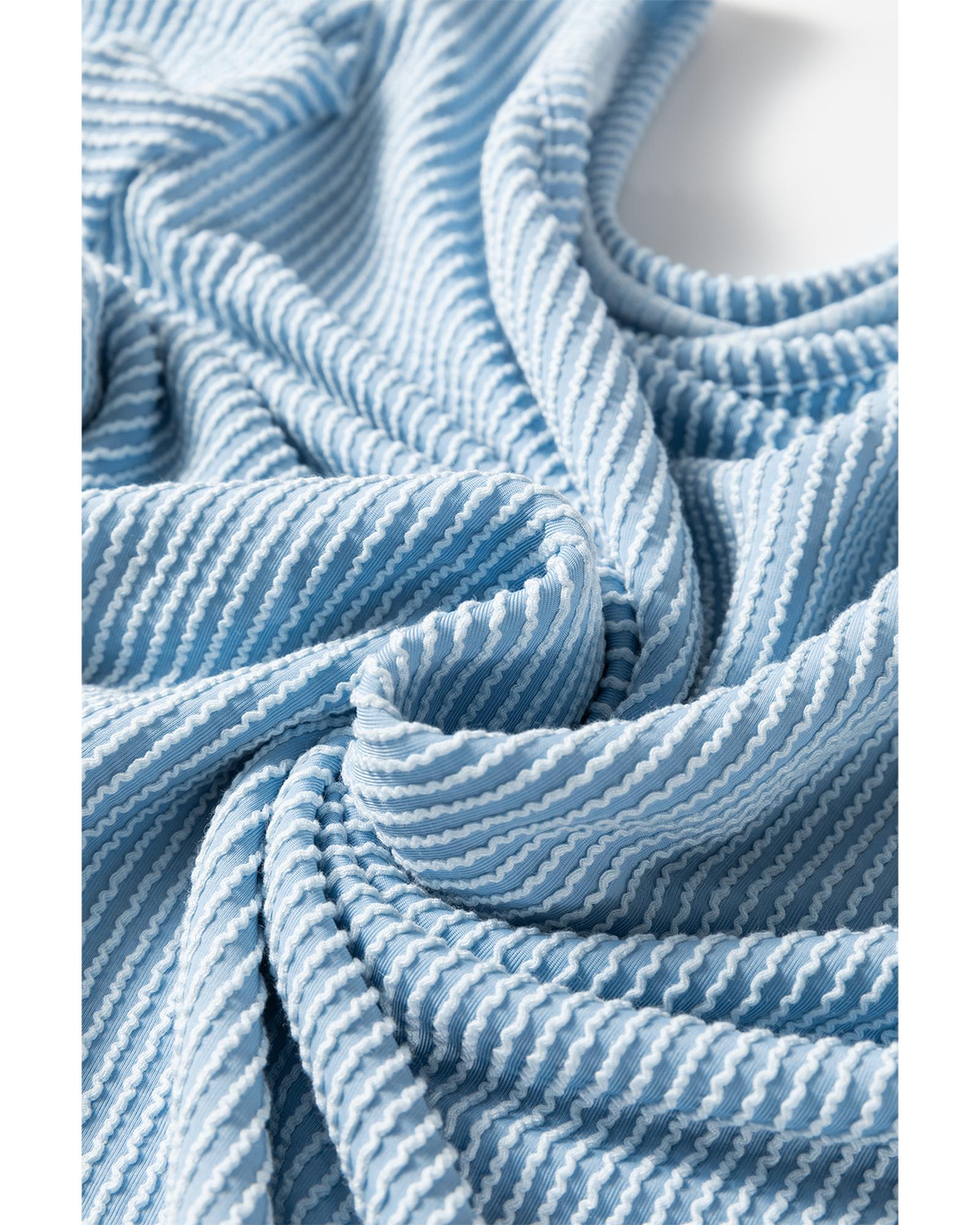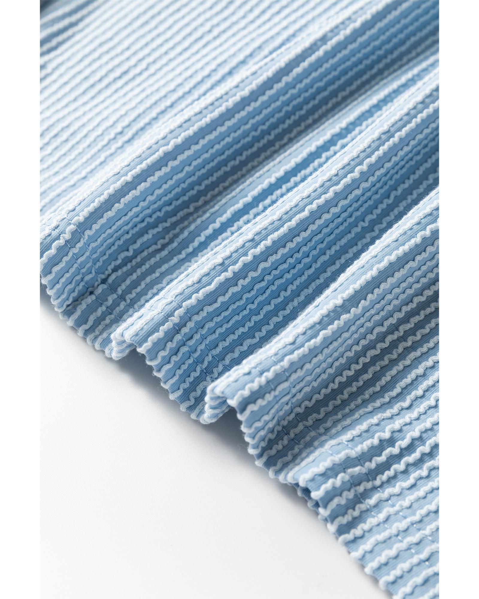 Mist Blue Corded Frilly Puff Sleeve Round Neck Blouse – M