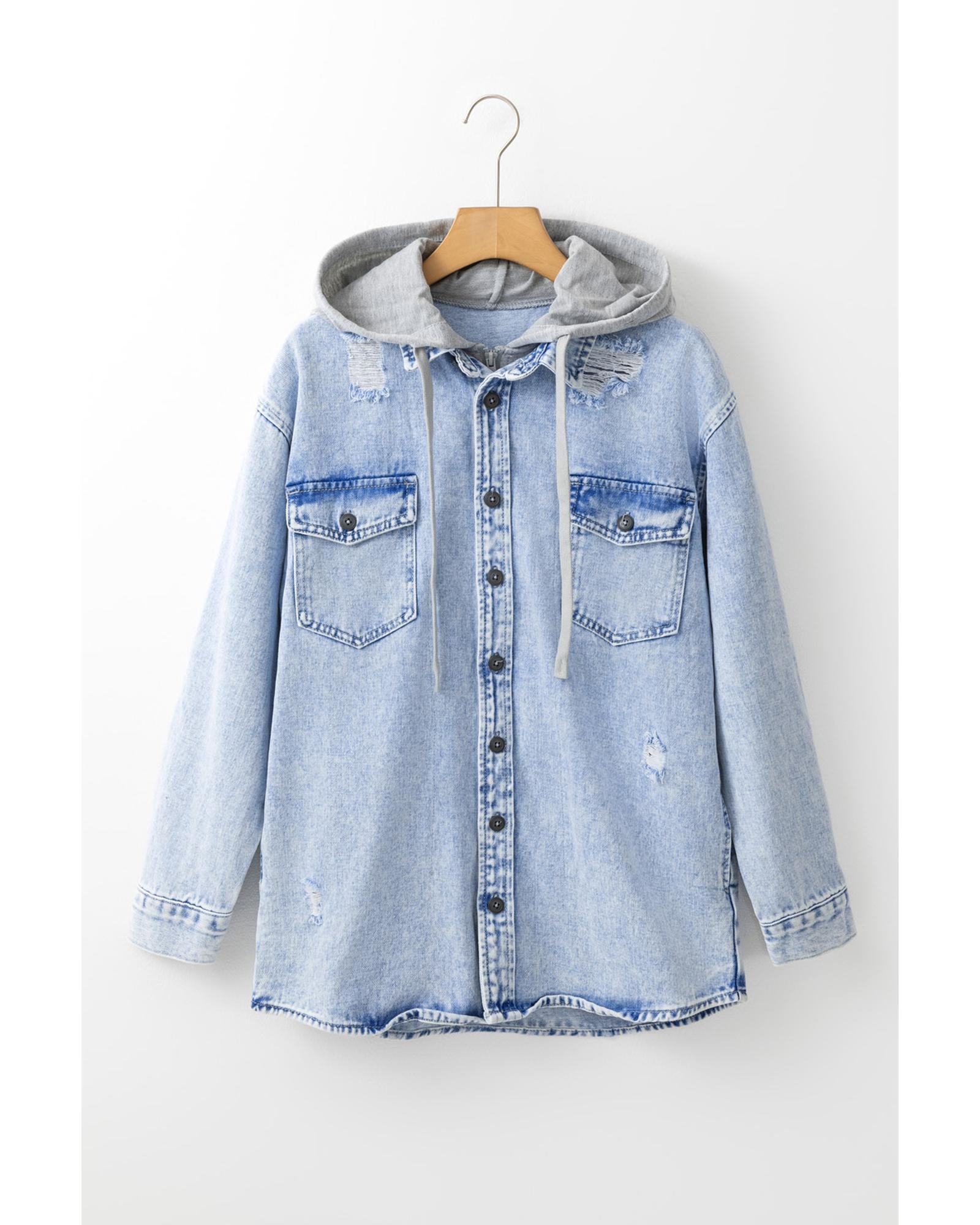 Mist Blue Oversized Contrast Hooded Denim Jacket – S