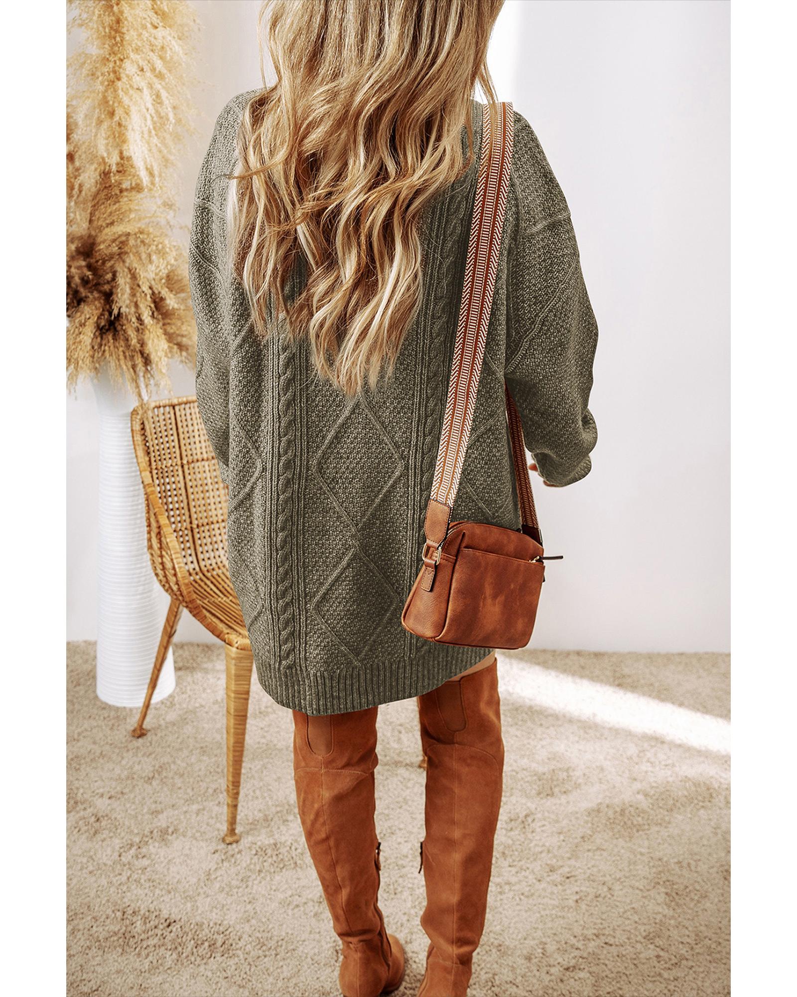 Mist Green Cable Knit Drop Shoulder Loose Fit Sweater Dress – XL