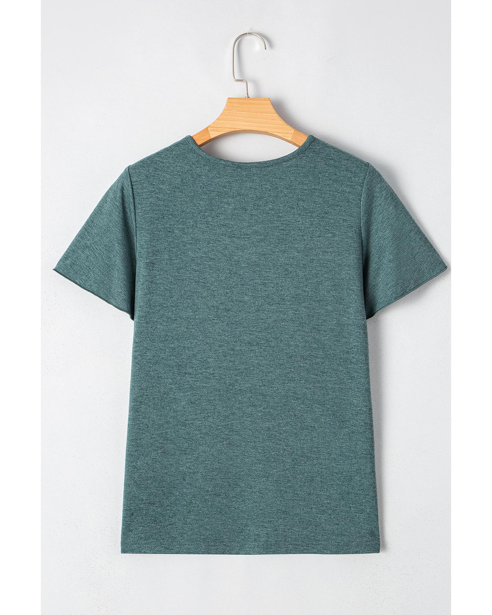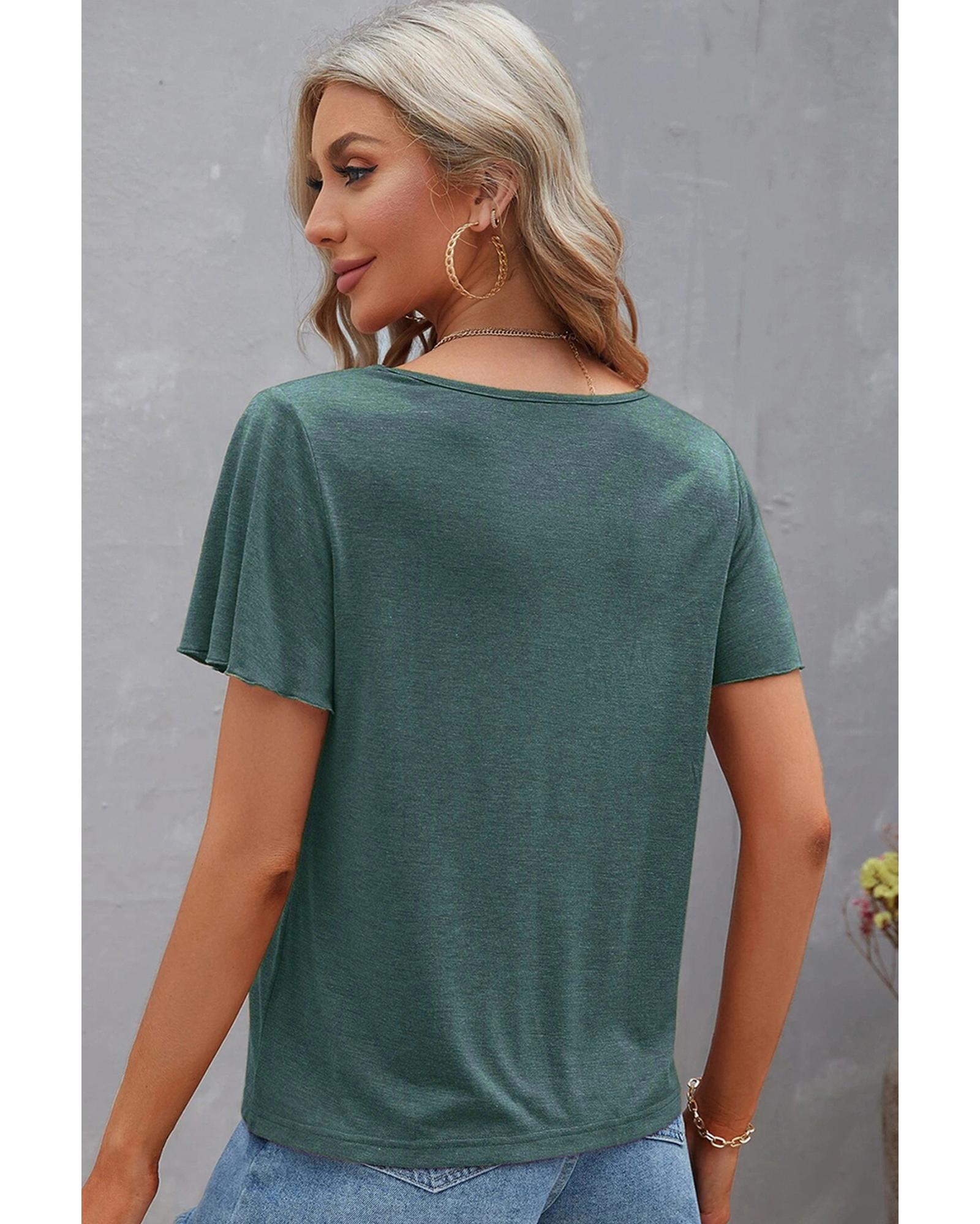 Mist Green Crisscross V Neck Butterfly Sleeve T Shirt – M