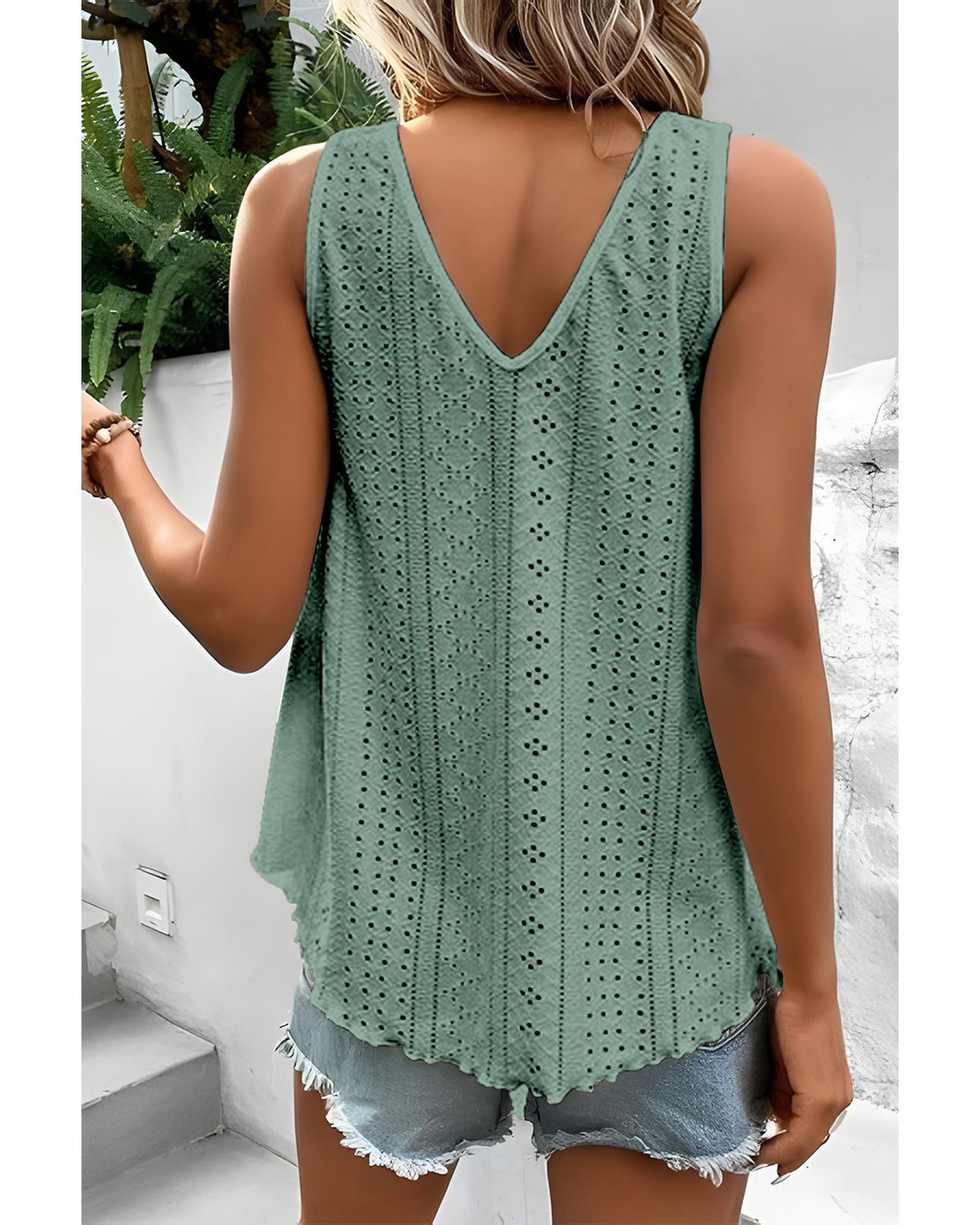 Mist Green Lace Crochet Splicing V Neck Loose Fit Tank Top – S