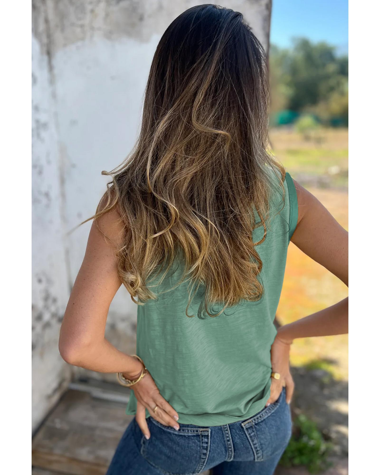 Sea Green Lattice Textured Split Neck Tank Top - S