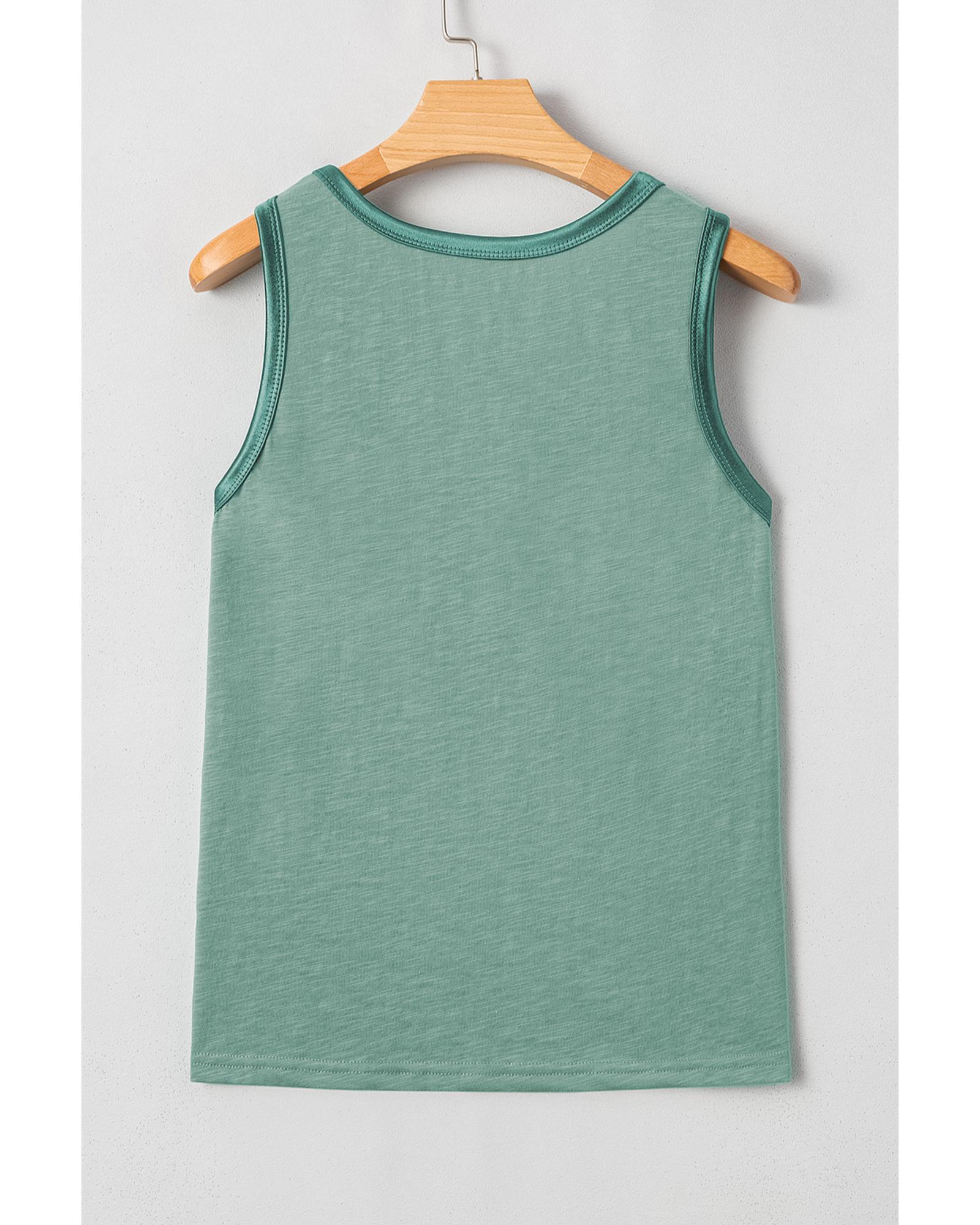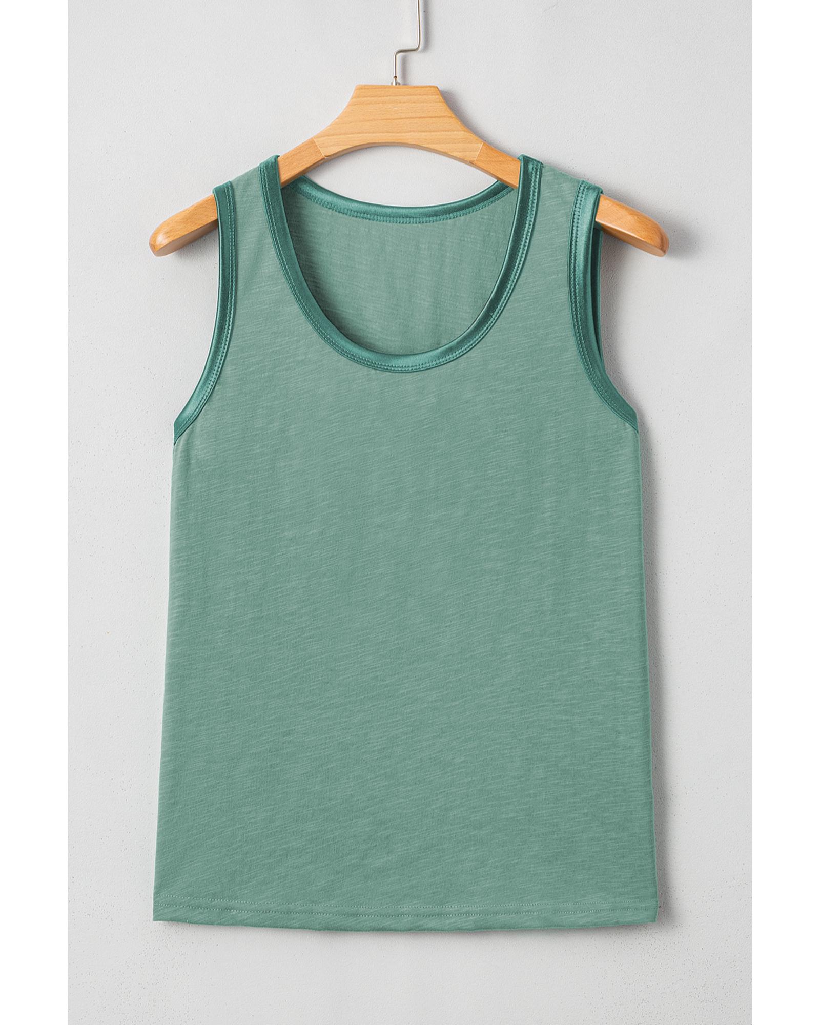 Mist Green Metallic Sheen Edge Scoop Neck Tank Top – M