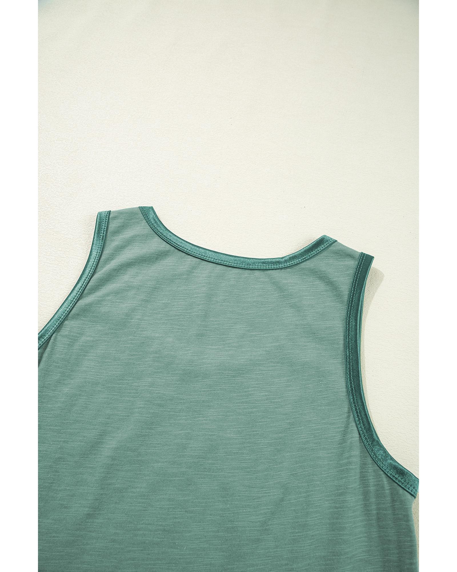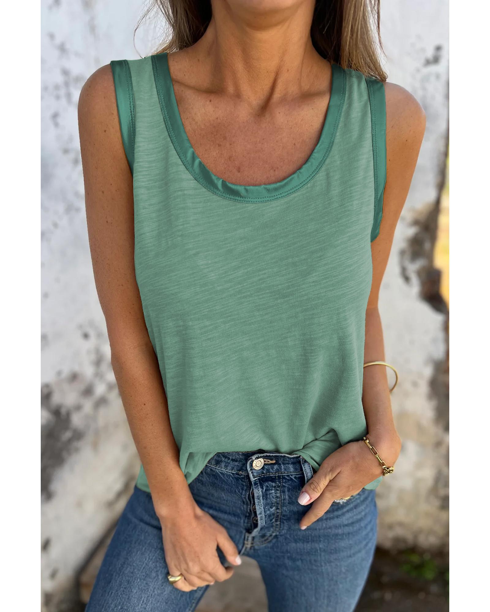 Mist Green Metallic Sheen Edge Scoop Neck Tank Top – S