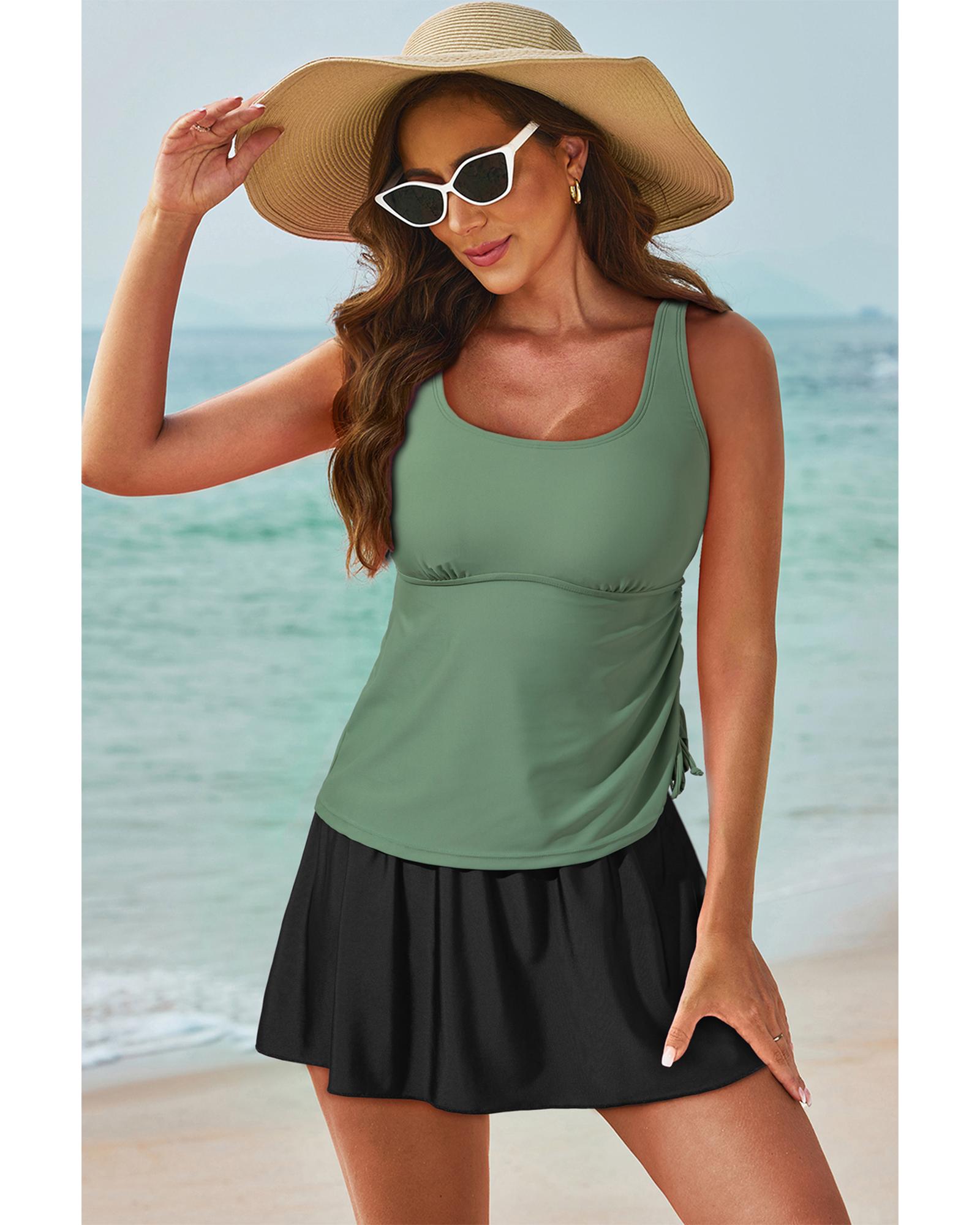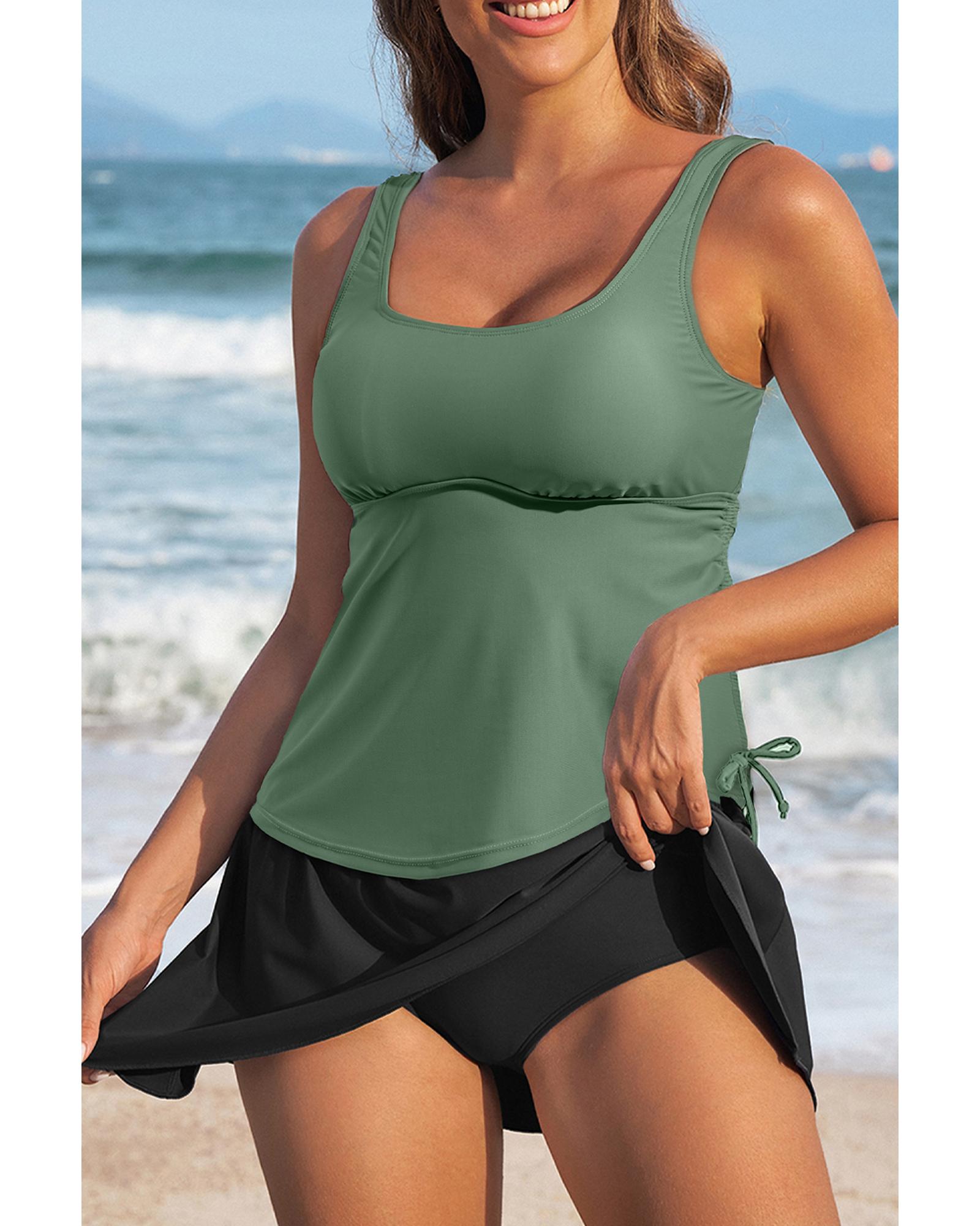 • Mist Green Scoop Neck Adjustable Tankini and Matching Skort Bathing Suit