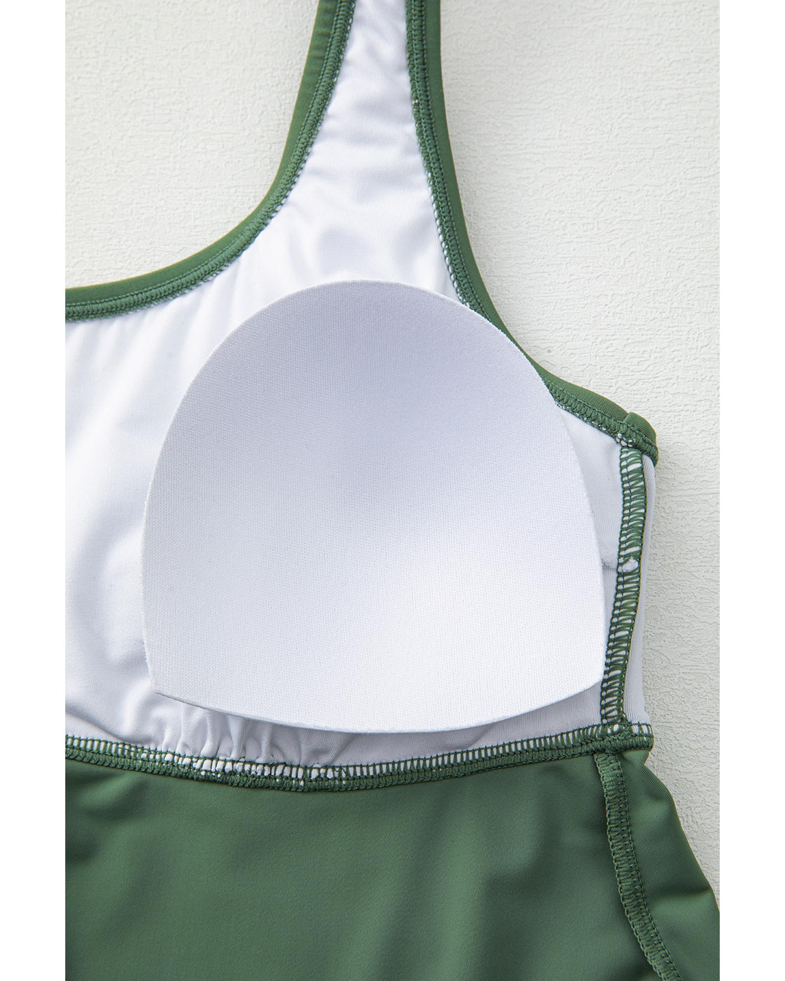- Mist Green Scoop Neck Adjustable Tankini and Matching Skort Bathing Suit