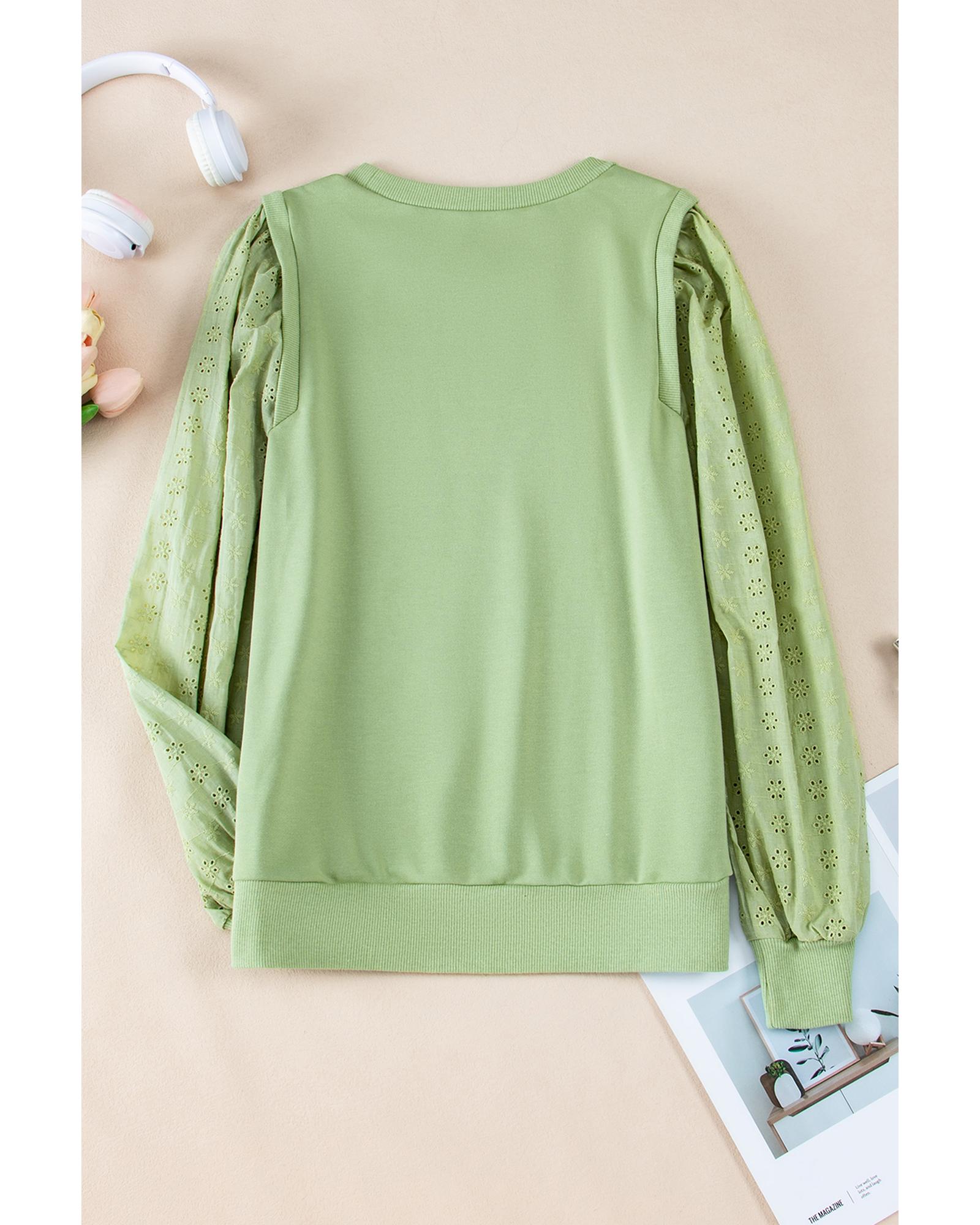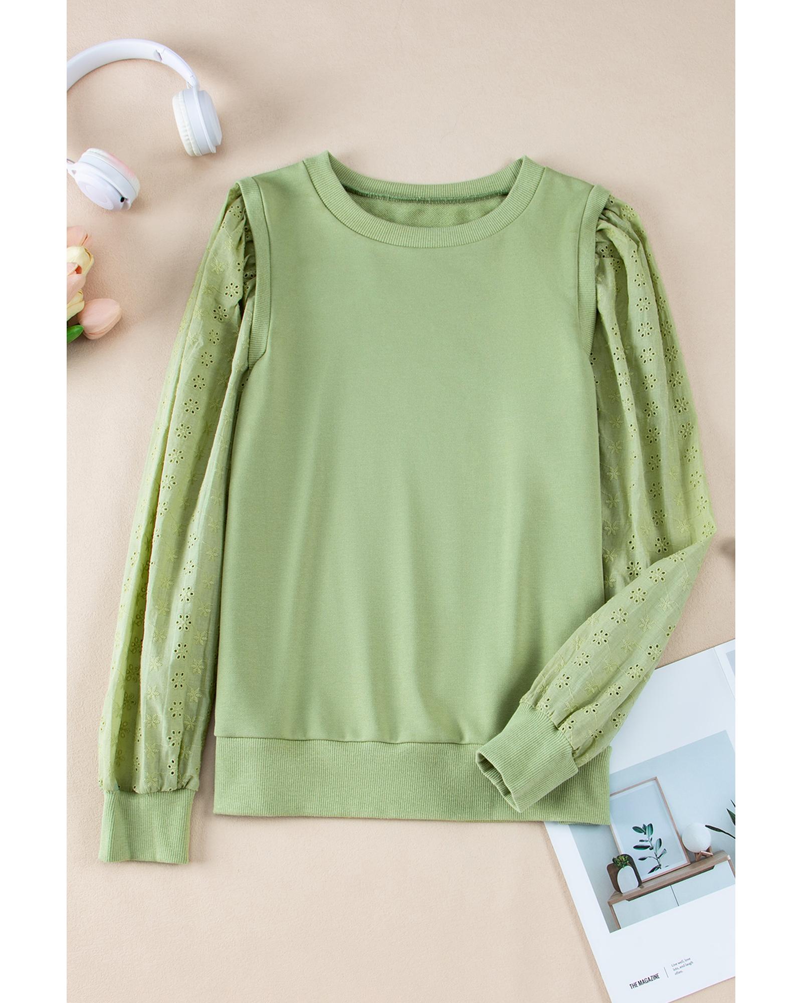 Mist Green Solid Patchwork Sleeve Round Neck Sweatshirt – 2XL