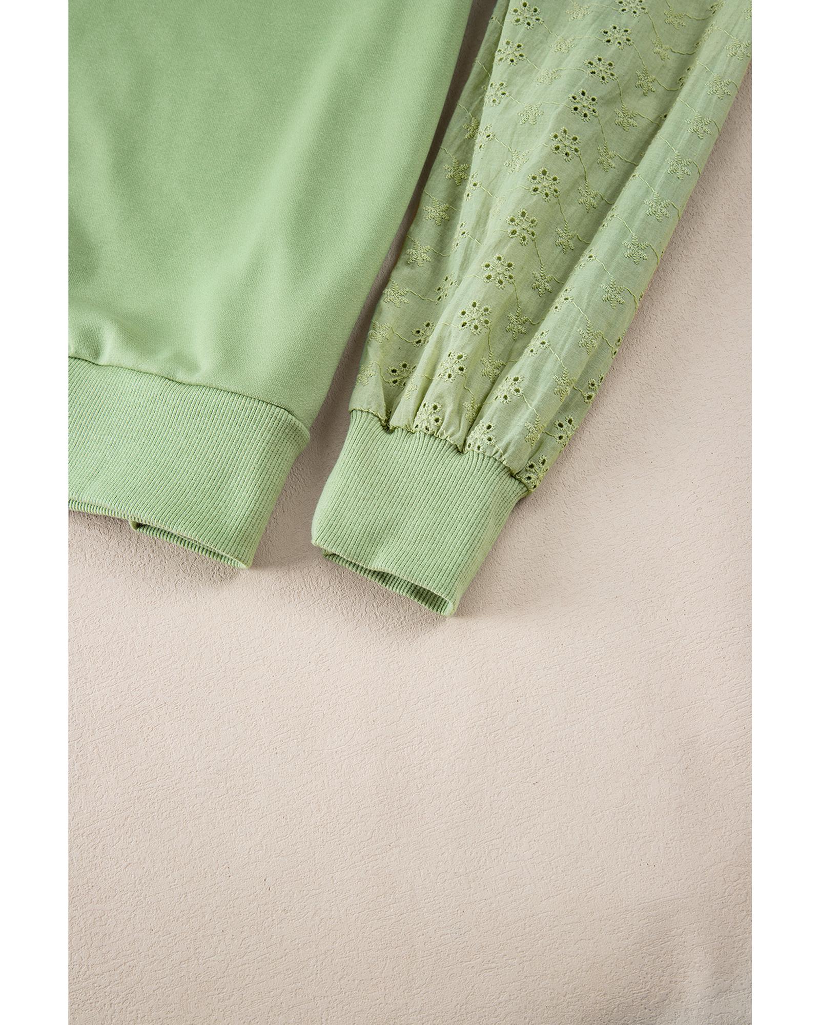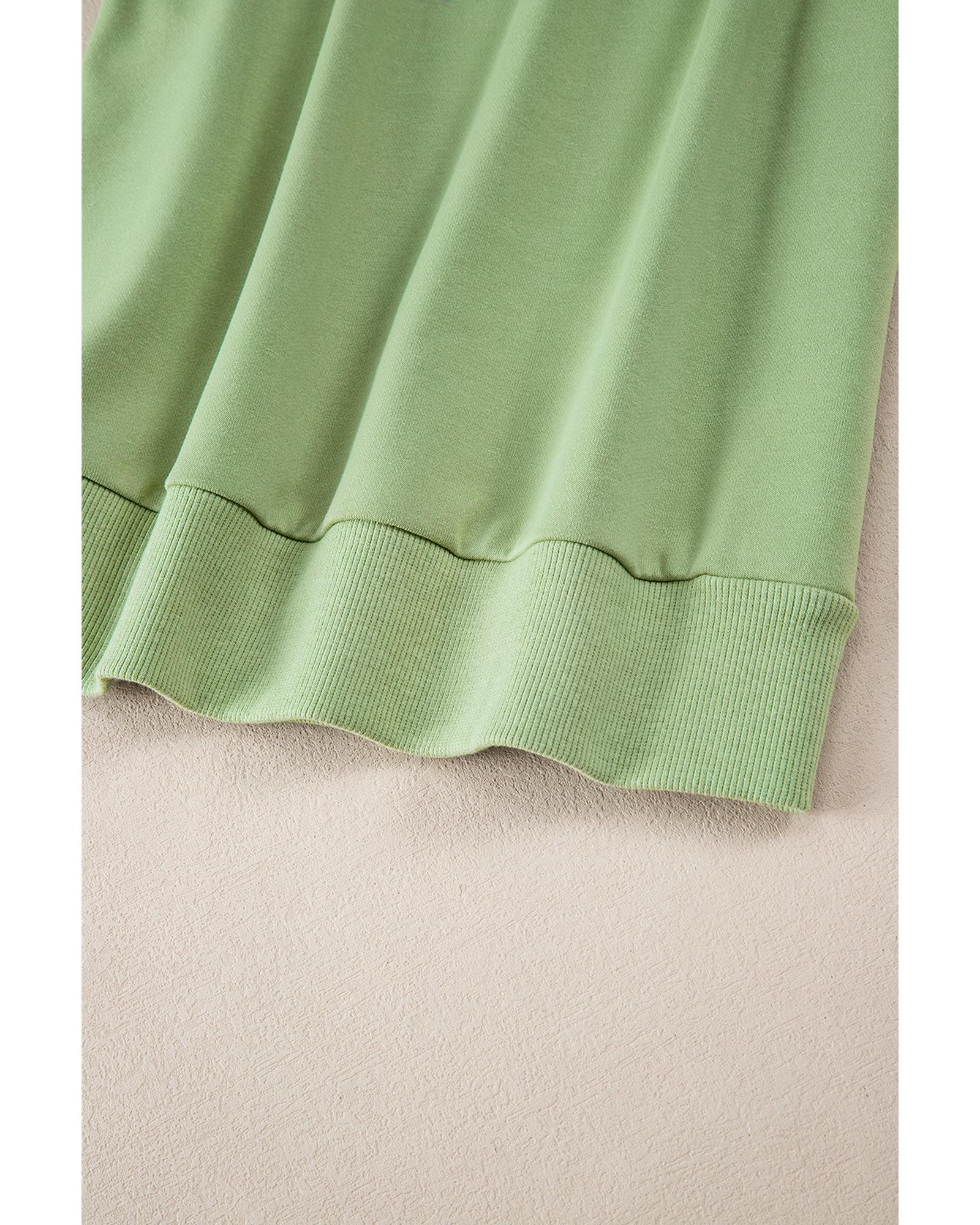 Mist Green Solid Patchwork Sleeve Round Neck Sweatshirt – S