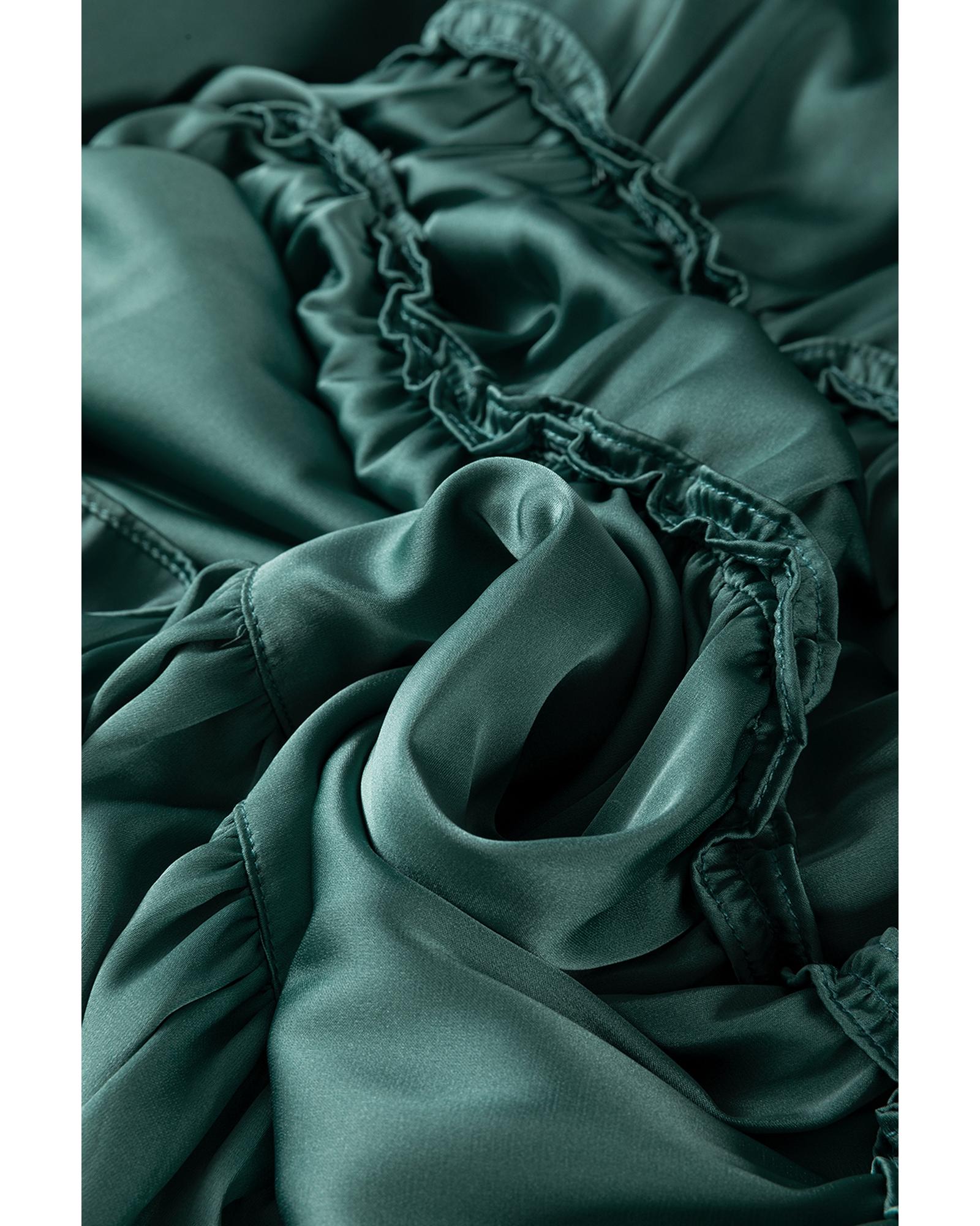 - Tiered ruffles design creates a playful feminine look