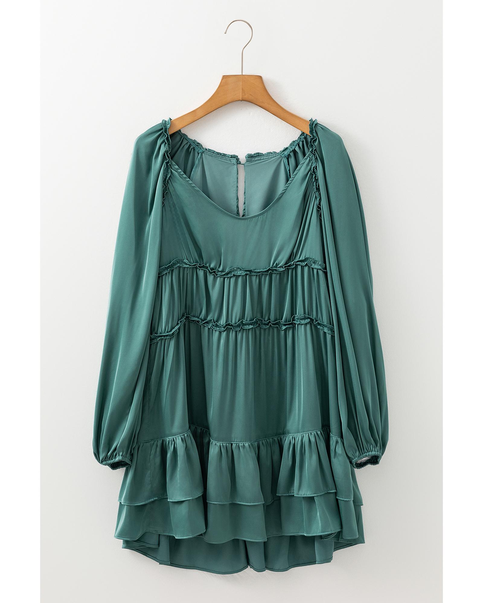 Mist Green Tiered Ruffled Puff Sleeve Loose Fit Mini Dress – L