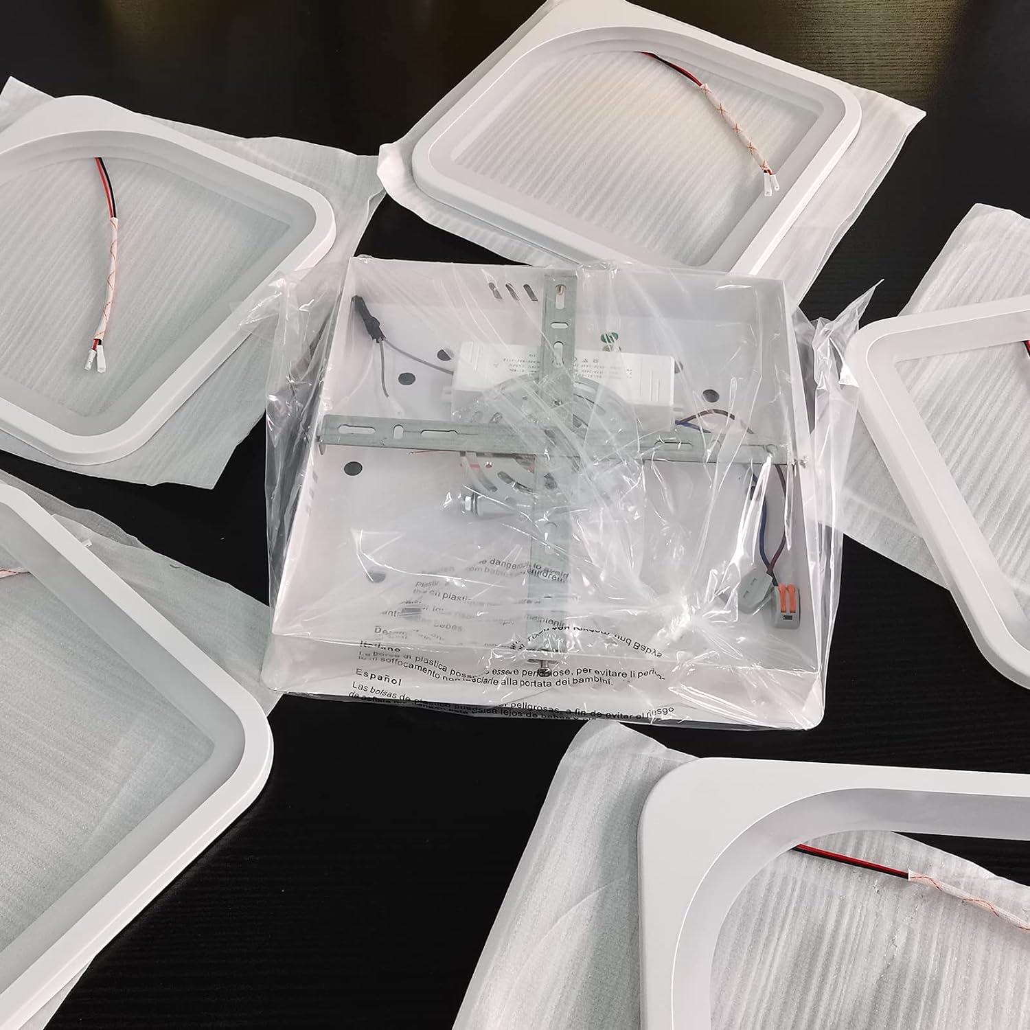 - This modern minimalist LED flush mount ceiling light is the perfect addition to any indoor space, including living rooms, bedrooms, dining rooms, and kitchens. Featuring a two-layer design with five square shades, this light creates a three-dimensional look that adds style and sophistication to your home.