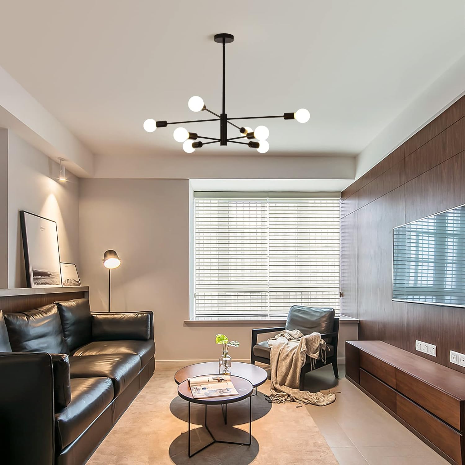 - This sputnik-style chandelier is the perfect light for any home. Its modern and luxurious design, with golden copper and black painted metal details, adds a hint of fashion to any space. Enjoy the combination of modern minimalism and luxury style with this beautiful pendant lighting.