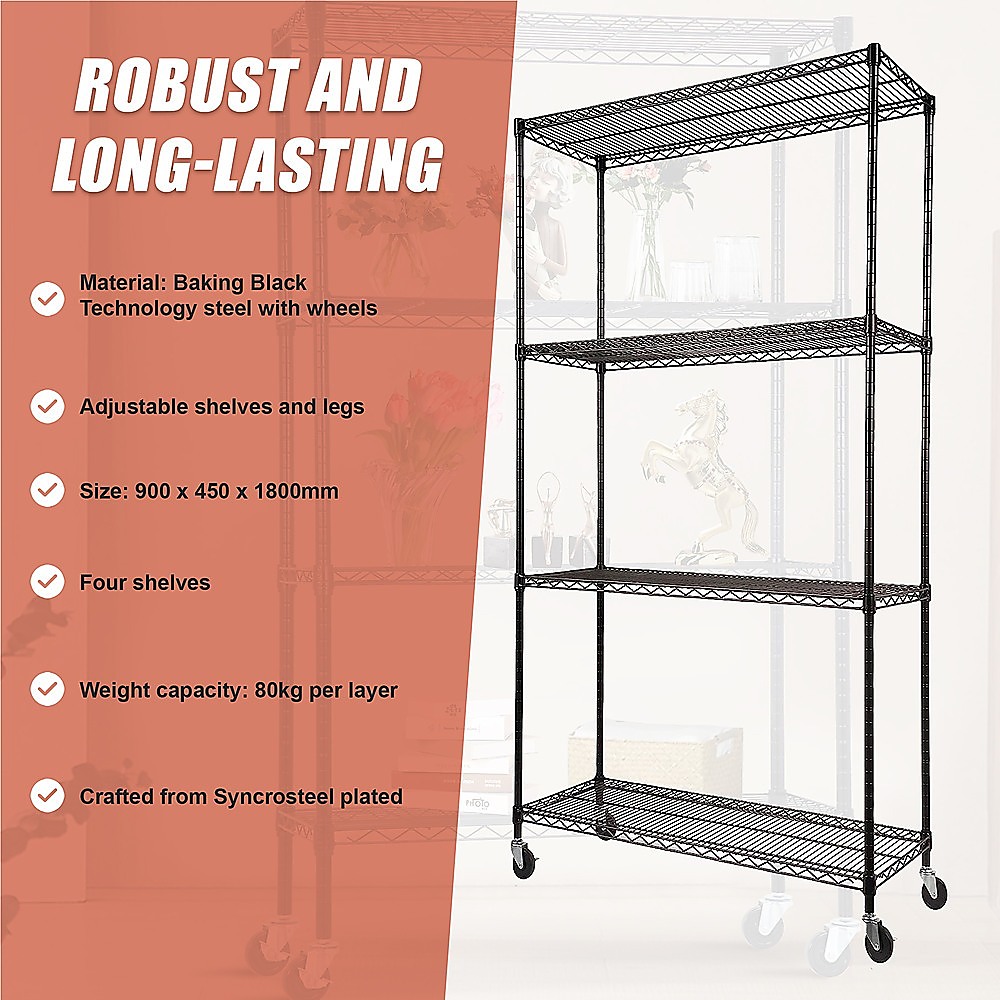 When it comes to strength and dependability, this four-shelf storage unit excels. Crafted from Syncrosteel plated steel, it is designed to withstand the test of time. The wire shelving adds a sense of lightness and mobility, granting you unmatched versatility to adapt to your ever-changing requirements.
