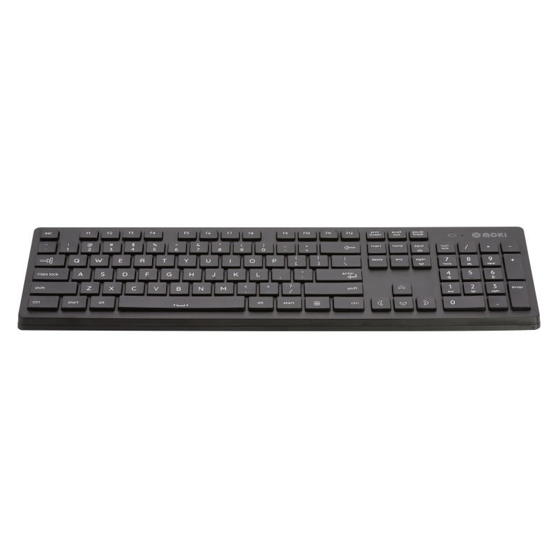 MOKI WIRELESS KEYBOARD BLACK IS AN EASY-TO-USE AND INSTALL KEYBOARD WITH A USB-A WIRELESS NANO RECEIVER. – PLUG PLAY – LOW PROFILE