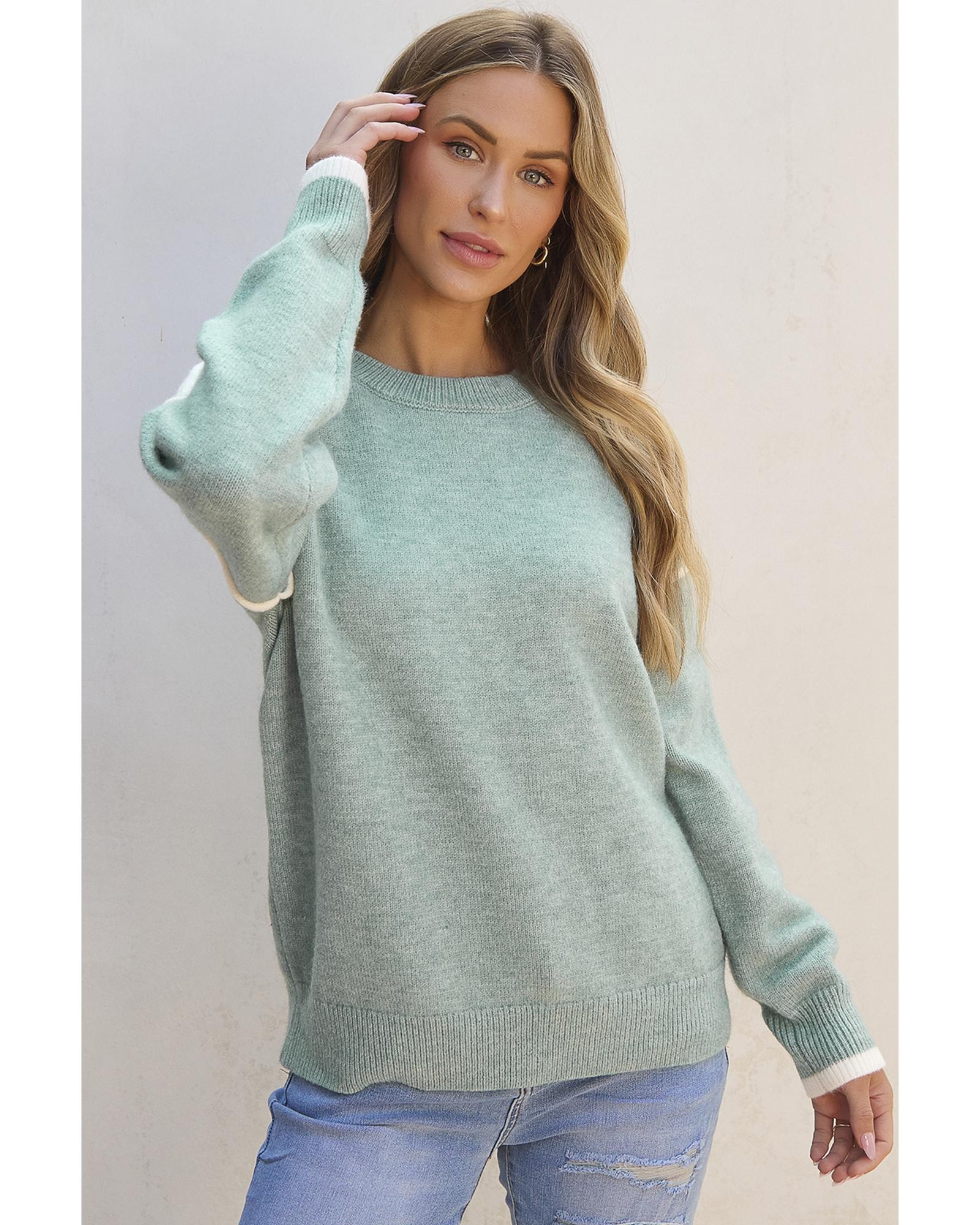 Moonlight Jade Colorblock Contrasting Edge Crewneck Sweater – L