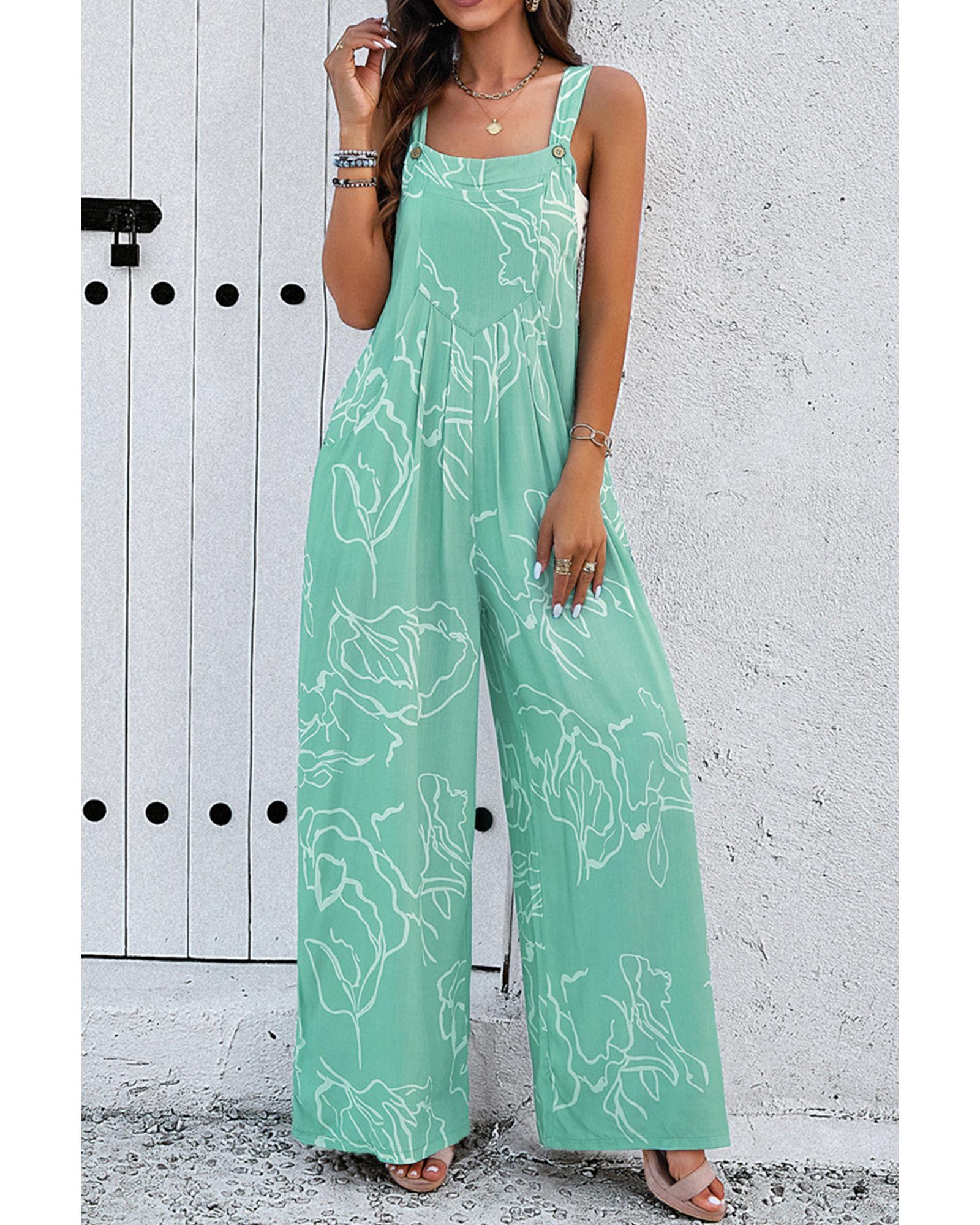 - Moonlight Jade Printed Bib Wide Leg Overalls
