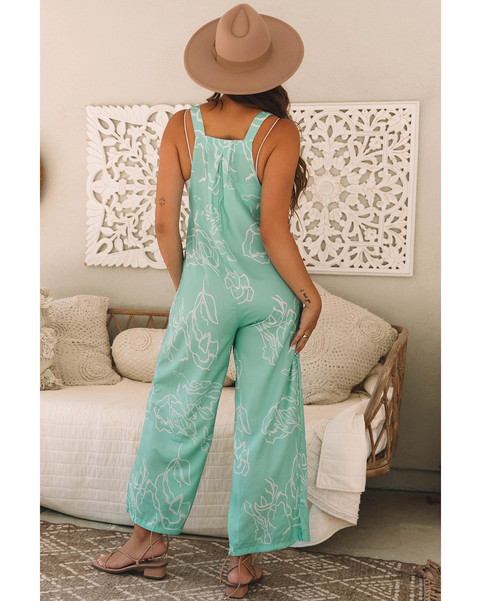 - Moonlight Jade Printed Bib Wide Leg Overalls
