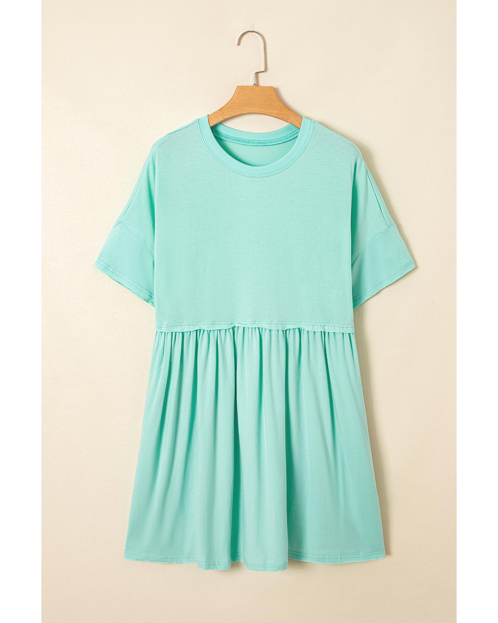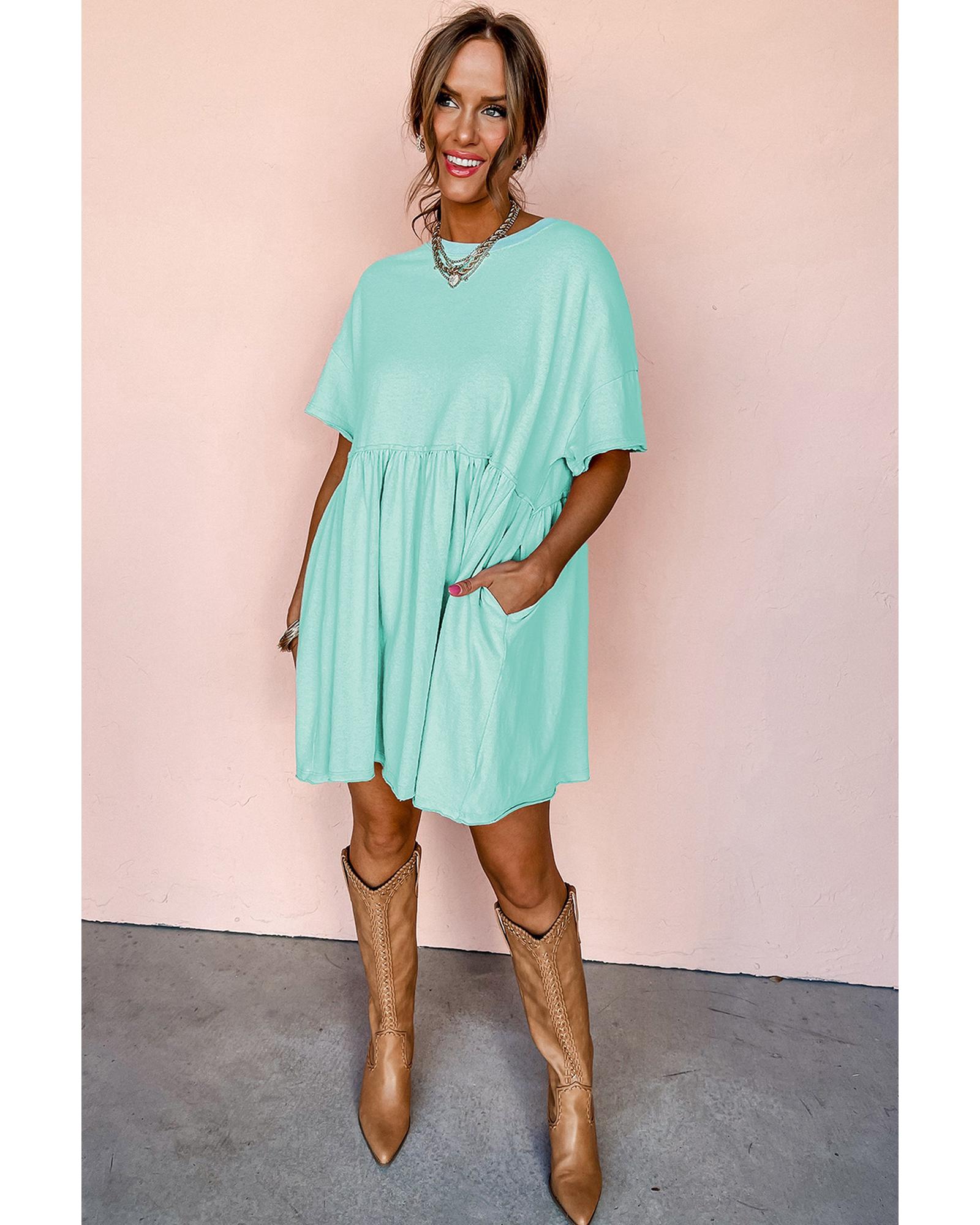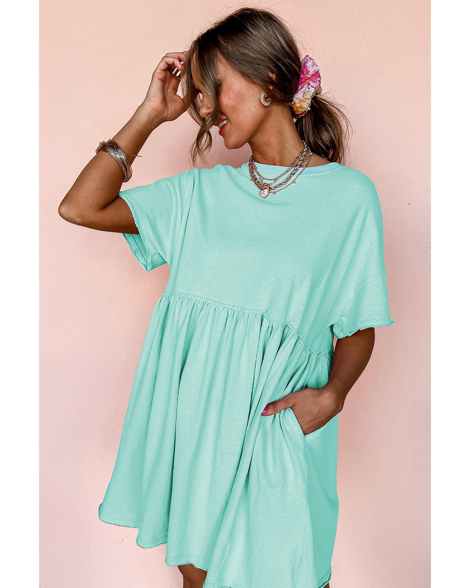 Moonlight Jade Solid Color Pocketed Raw Edge Babydoll Dress – XL