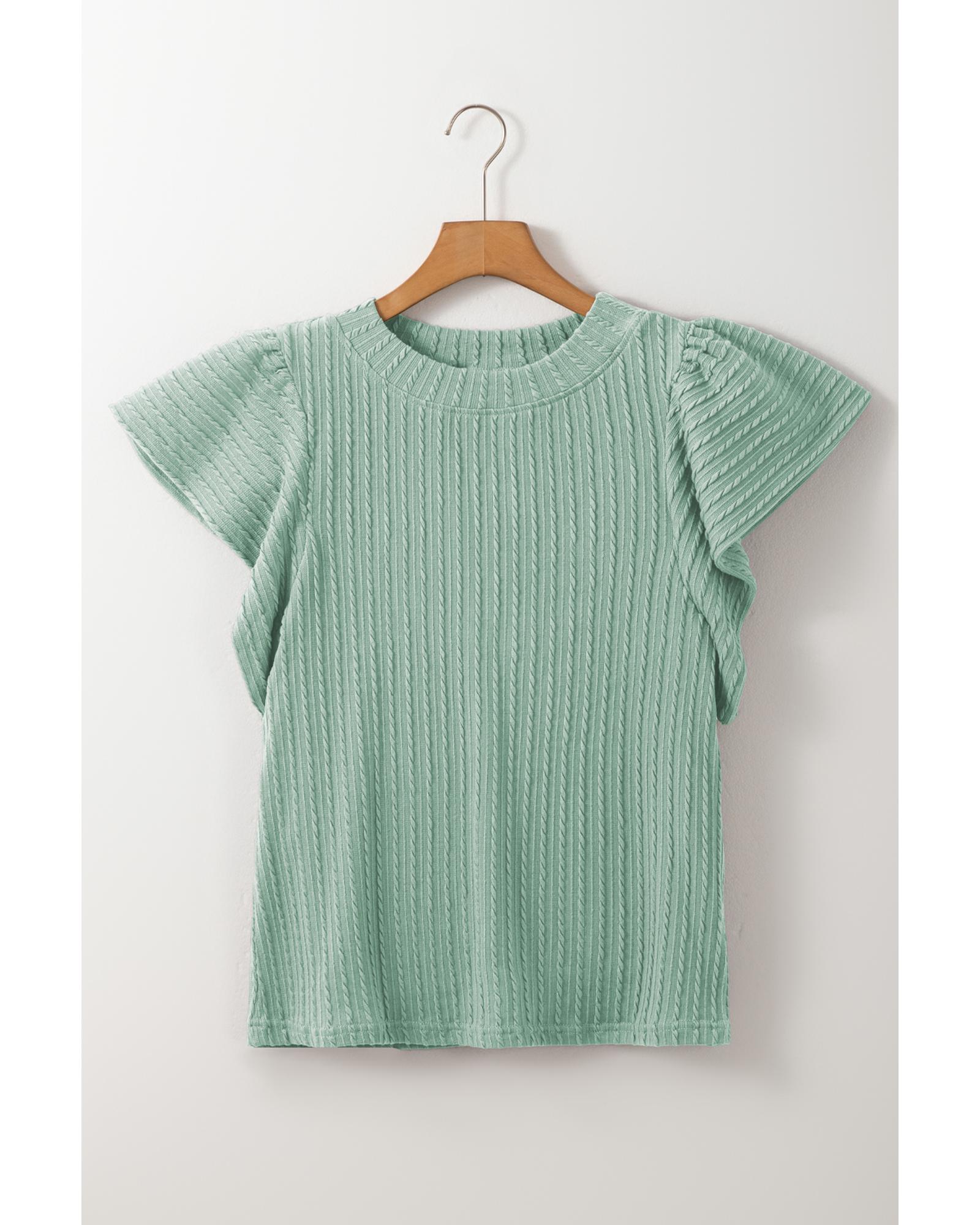 Moonlight Jade Solid Color Textured Flutter Sleeve Top – L