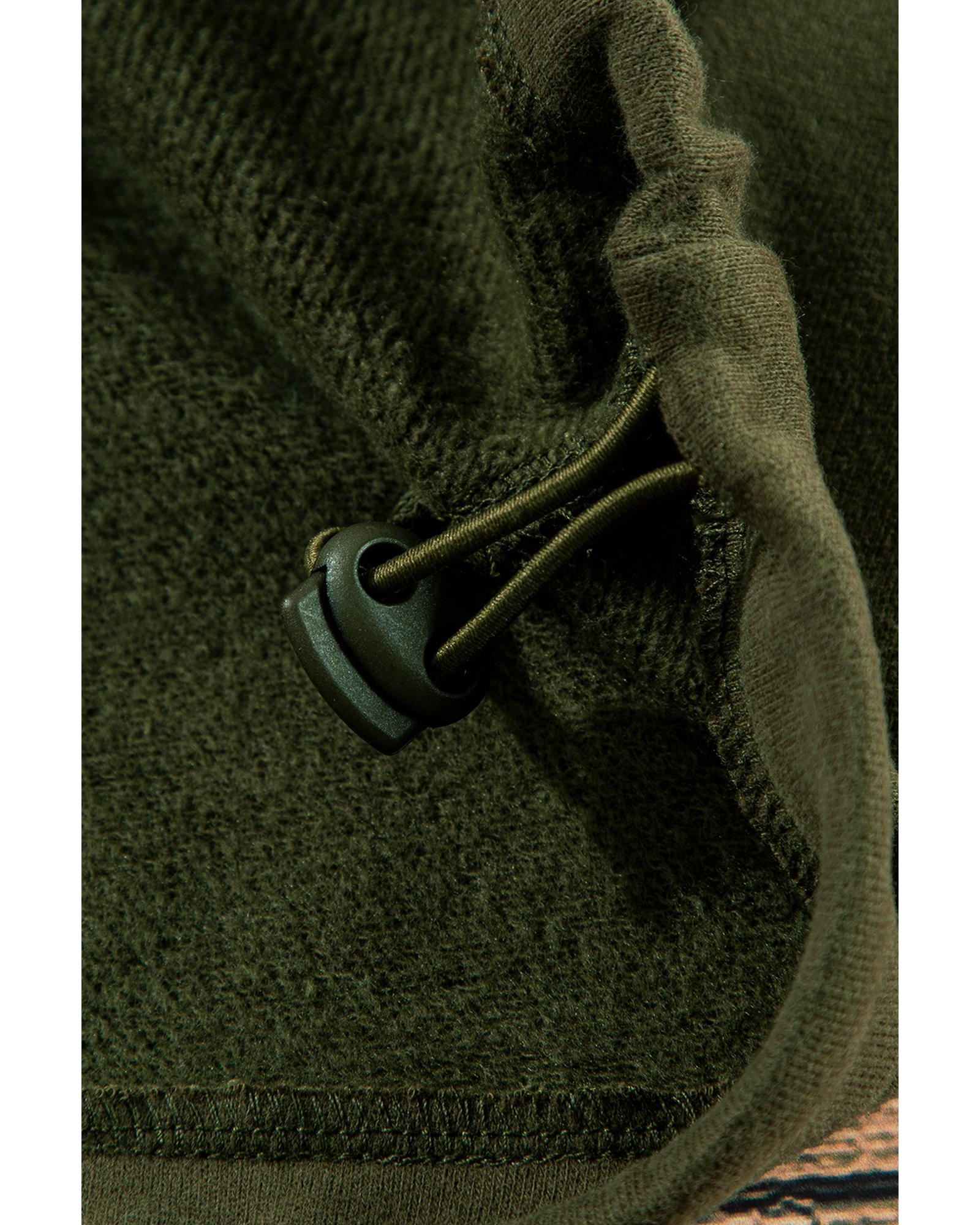 Moss Green Fleece Lined Half Zipper Kangaroo Pockets Loose Hoodie – M