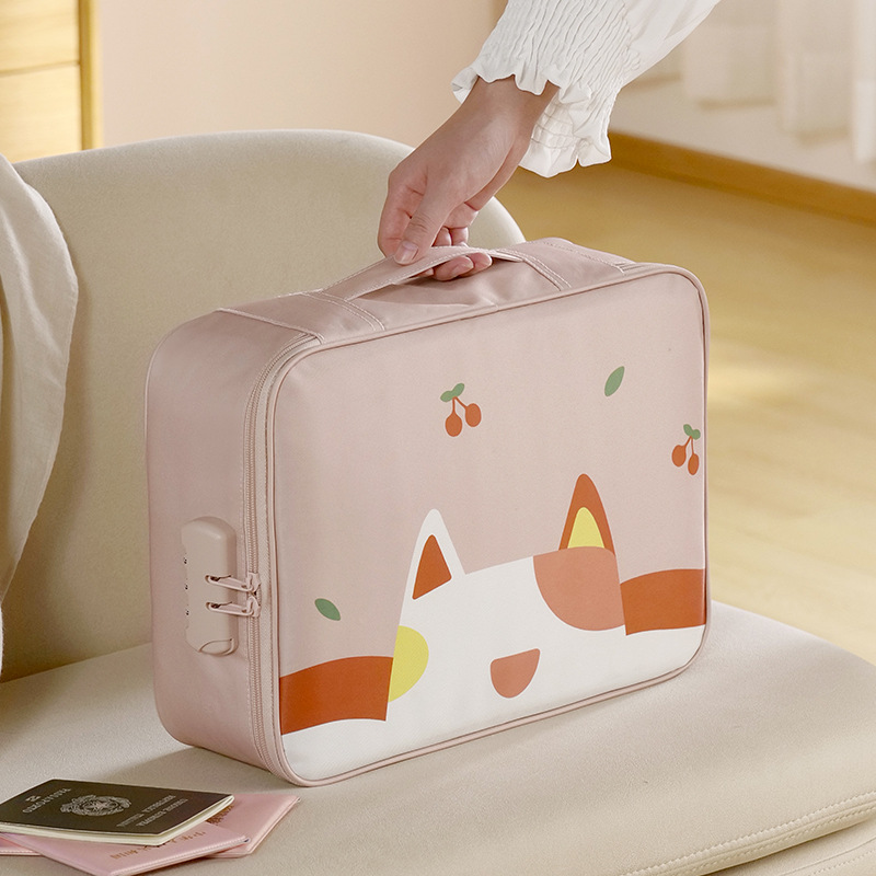 Multi-Functional Document & Certificate Organizer Bag with Combination Lock(Light pink)