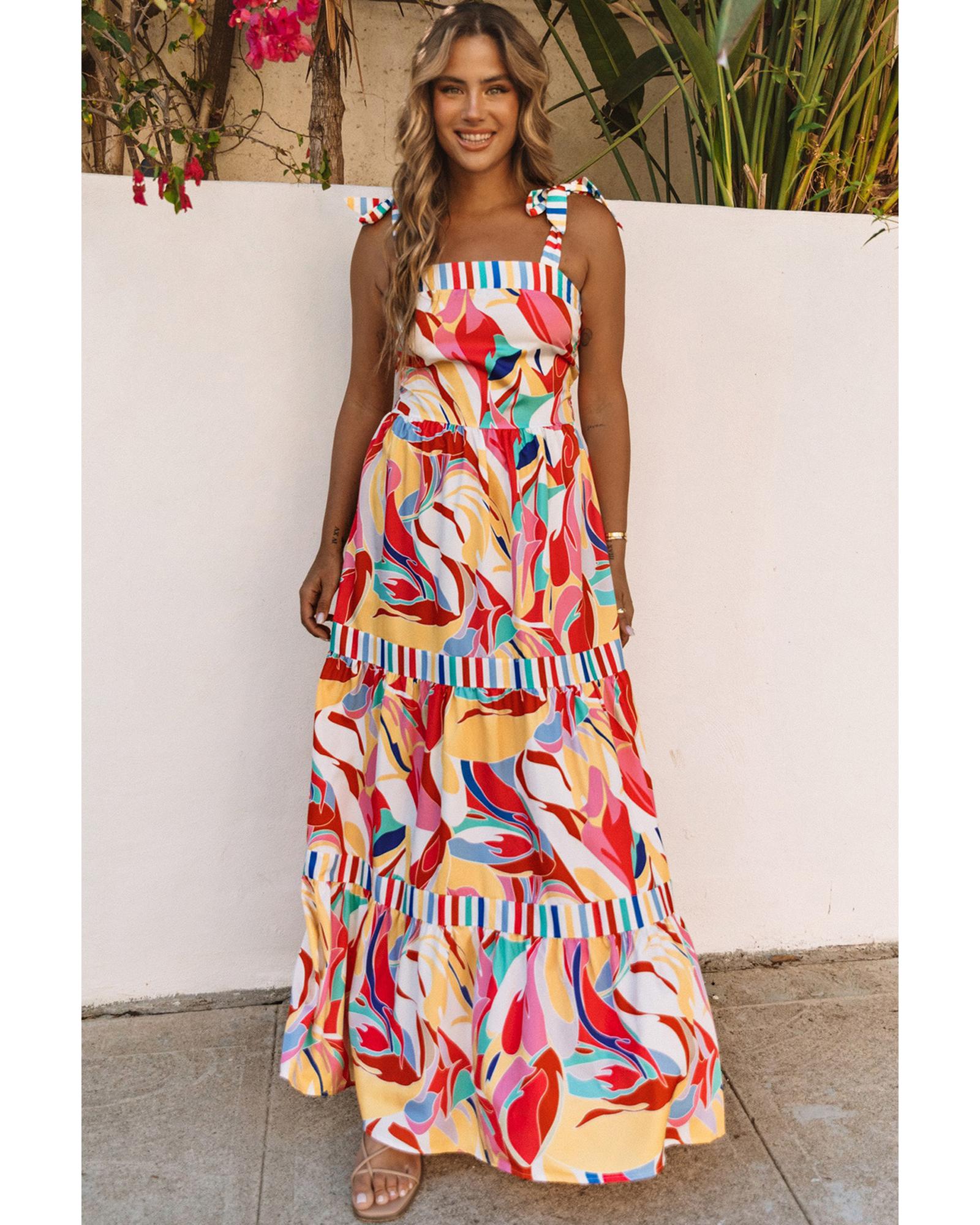 - Multicolor Abstract Print Striped Trim Maxi Sundress