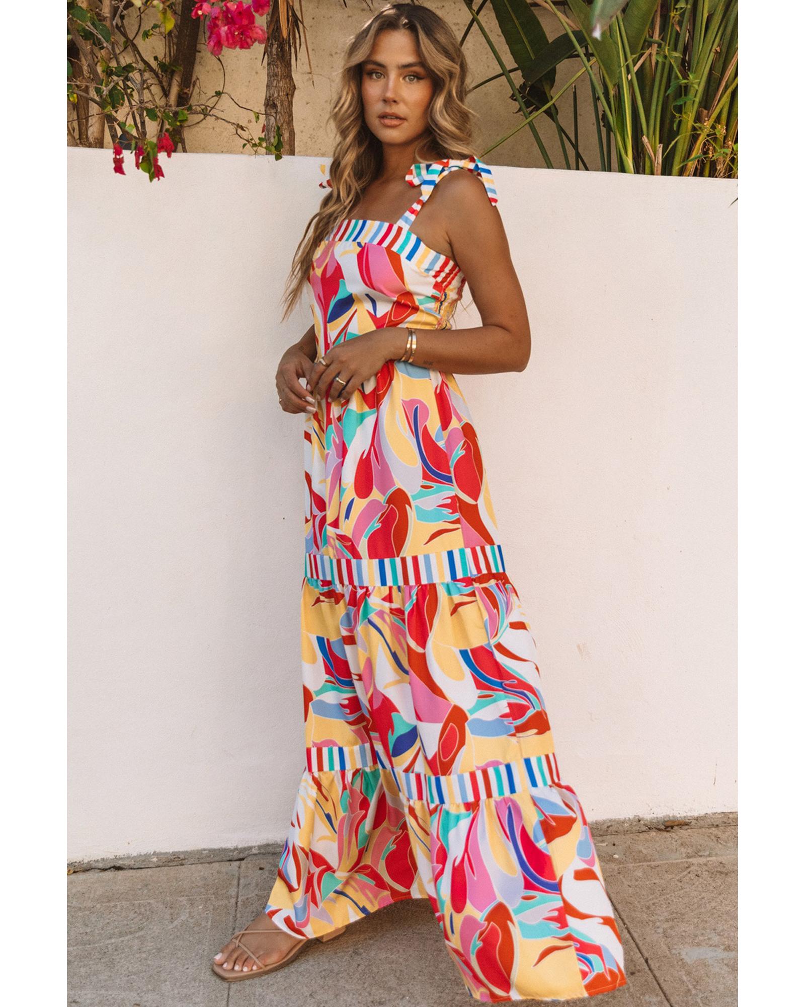 - Multicolor Abstract Print Striped Trim Maxi Sundress