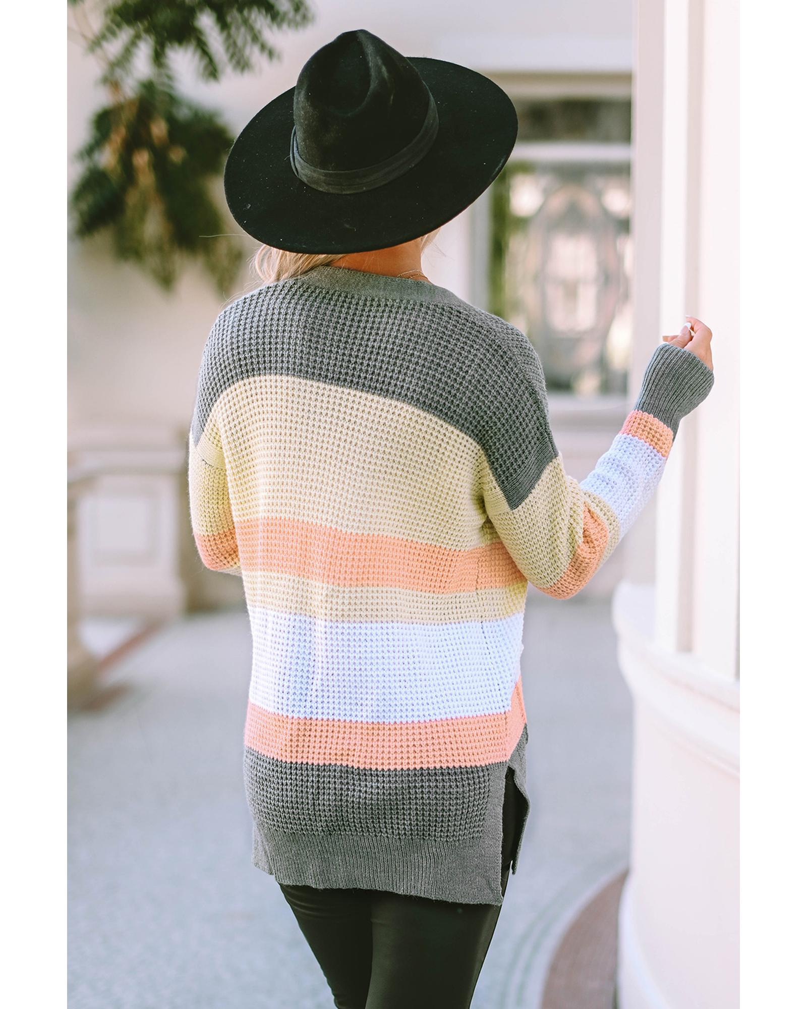 Multicolor Color Block Striped Pocketed Open Cardigan – S