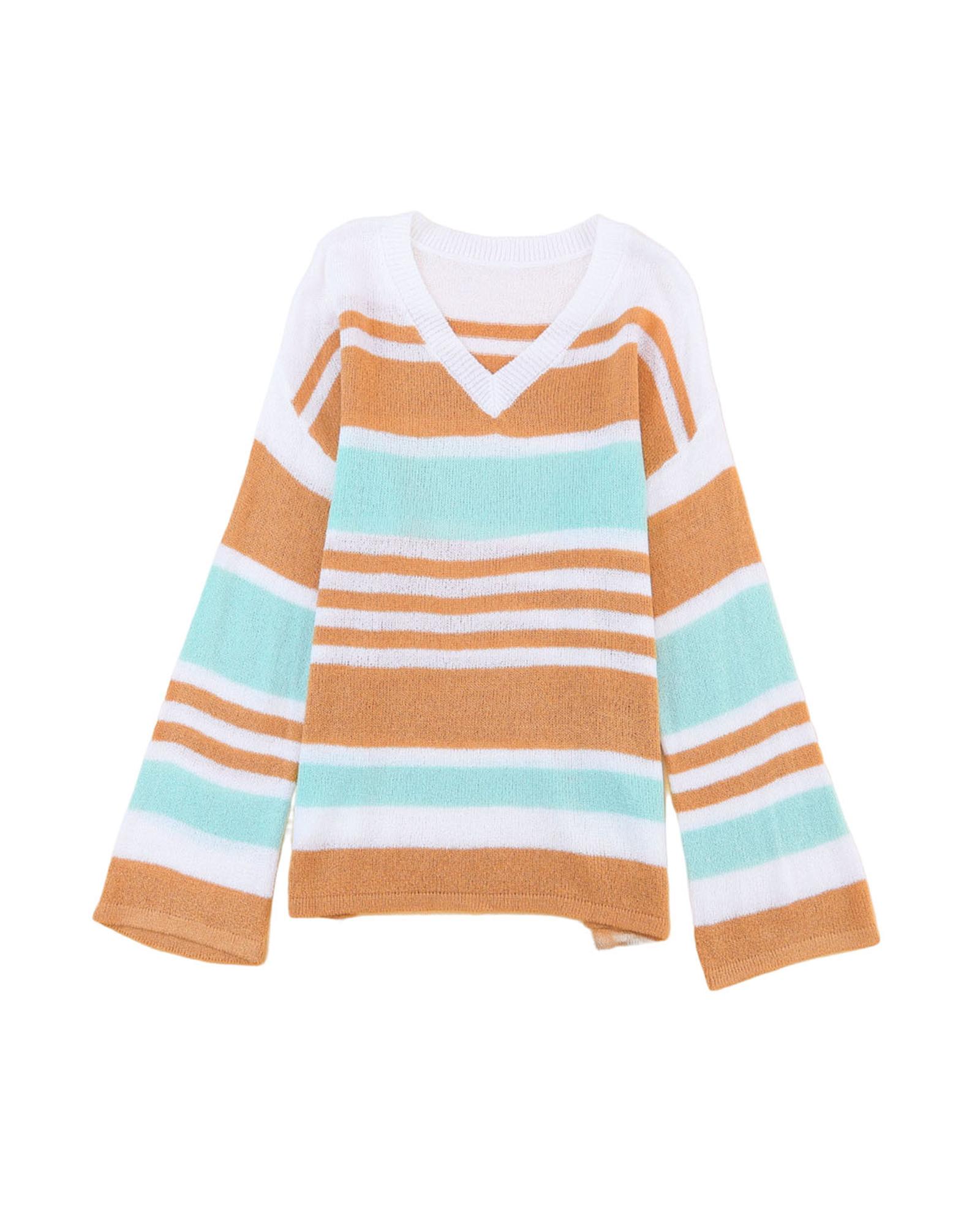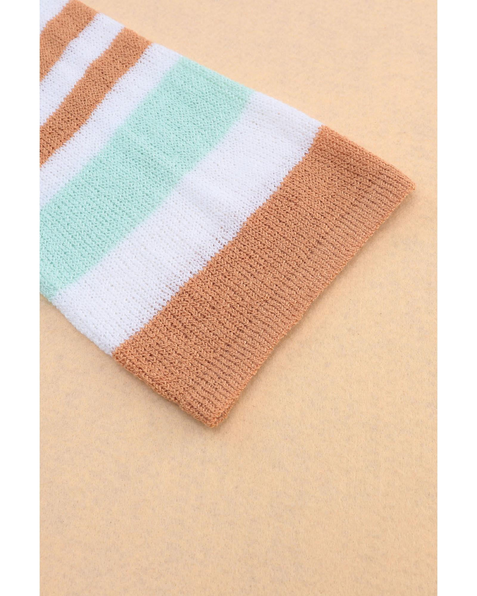 Multicolor Colorblock Stripe Long Sleeve Split Sweater – L