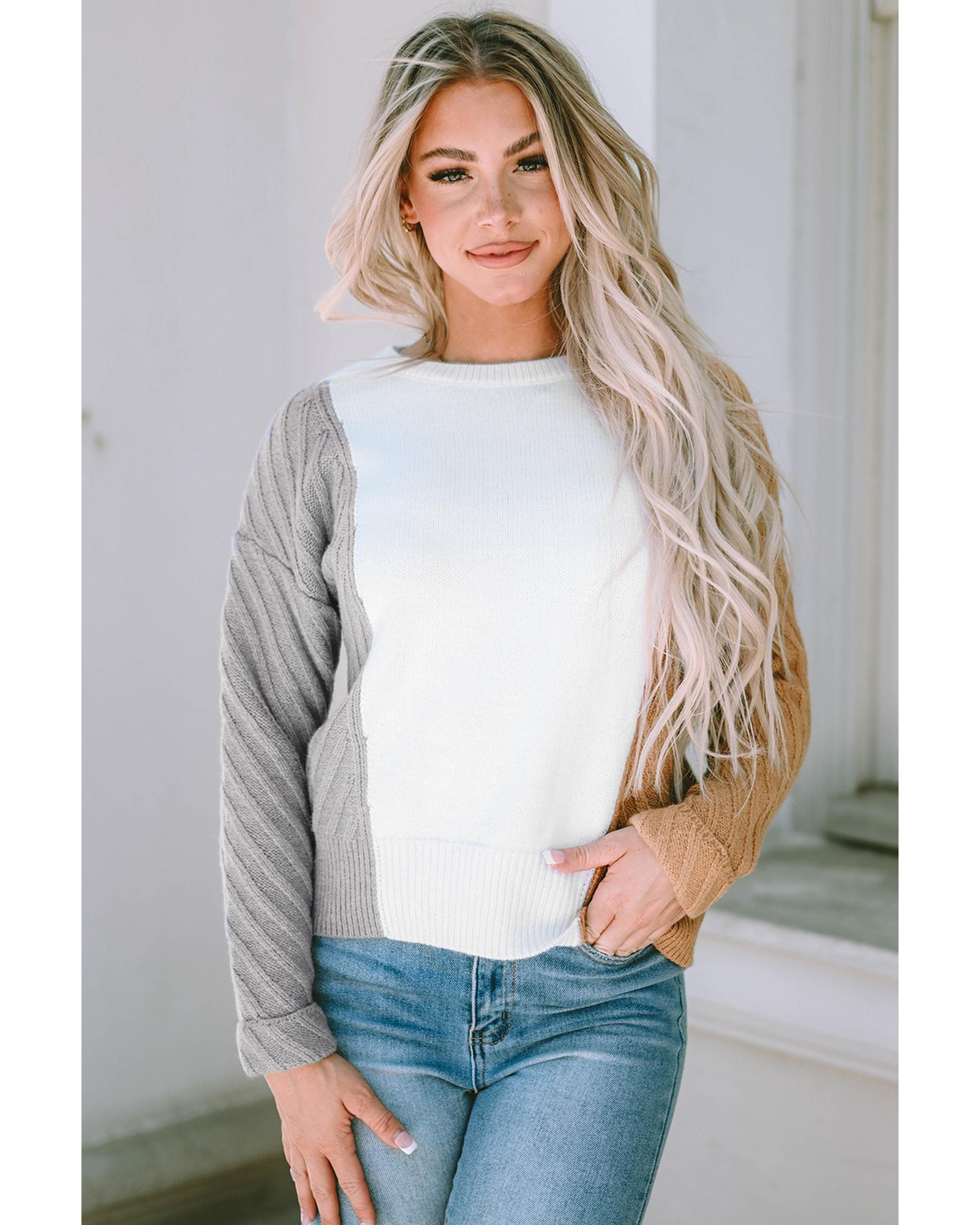 Multicolor Colorblock Textured Drop Shoulder Sweater – 2XL
