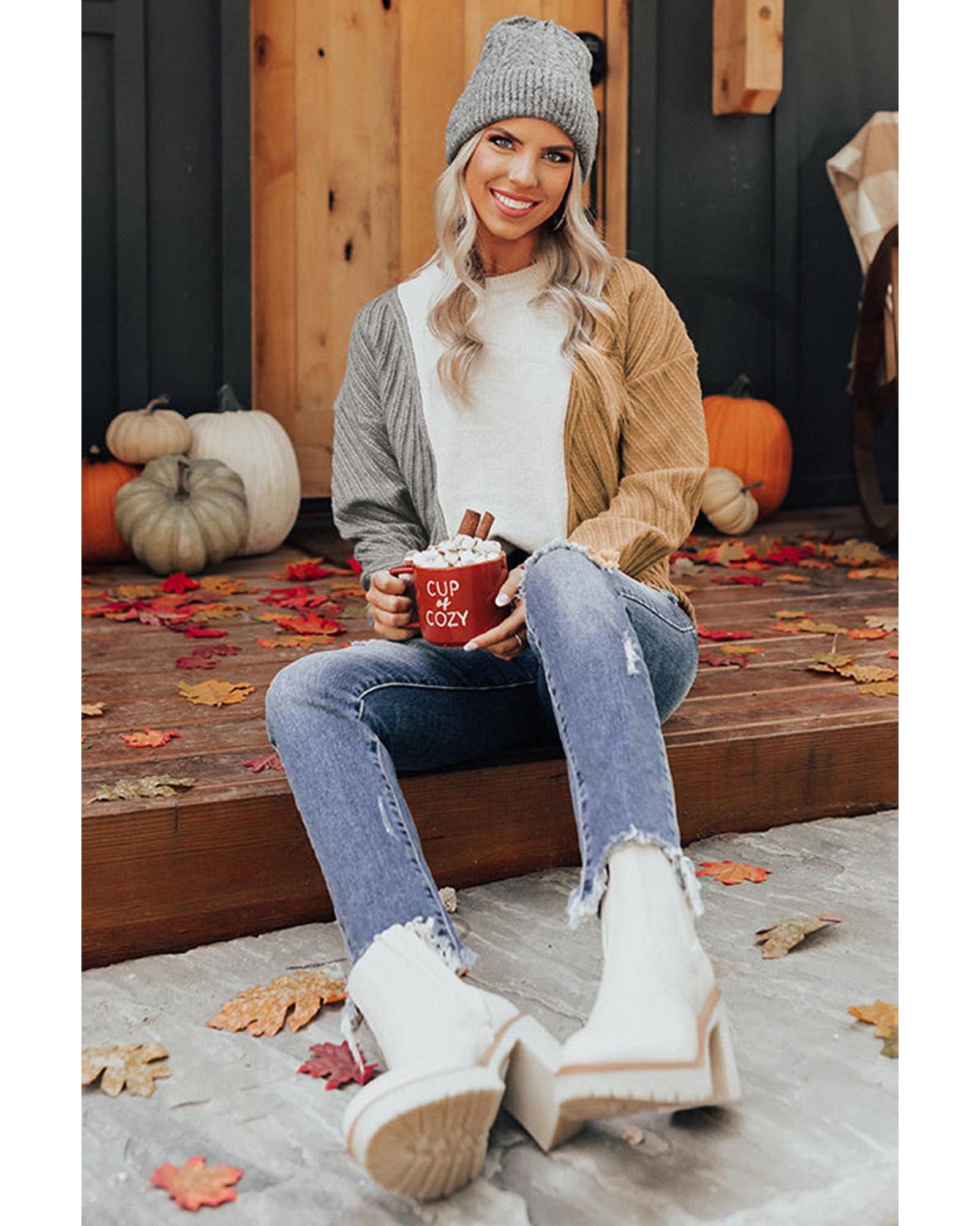Brown Chunky Waffle Knit Oversized Collar Cardigan - 2XL
